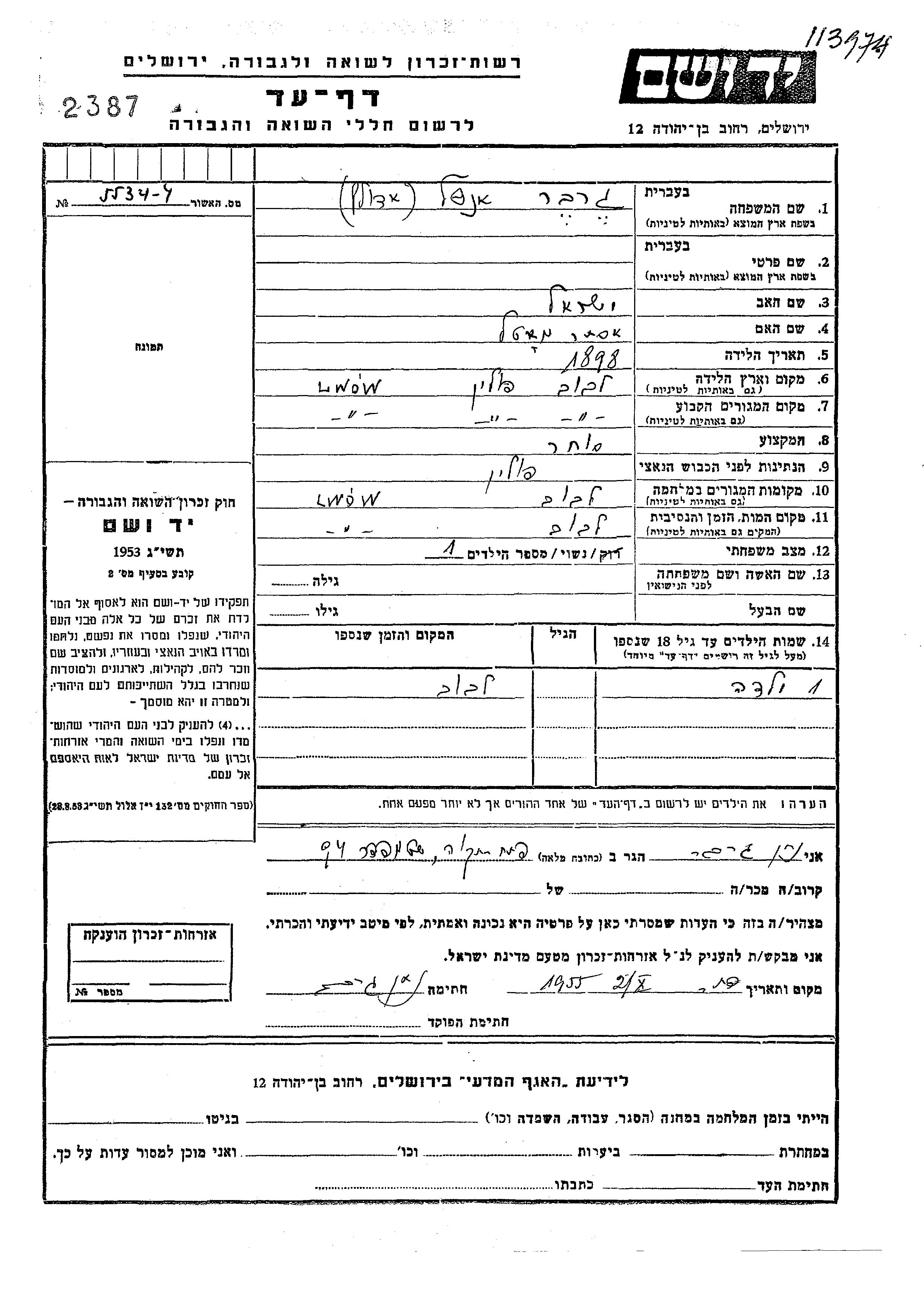 Яд Вашем - Листы свидетельских показаний Мемориального фонда