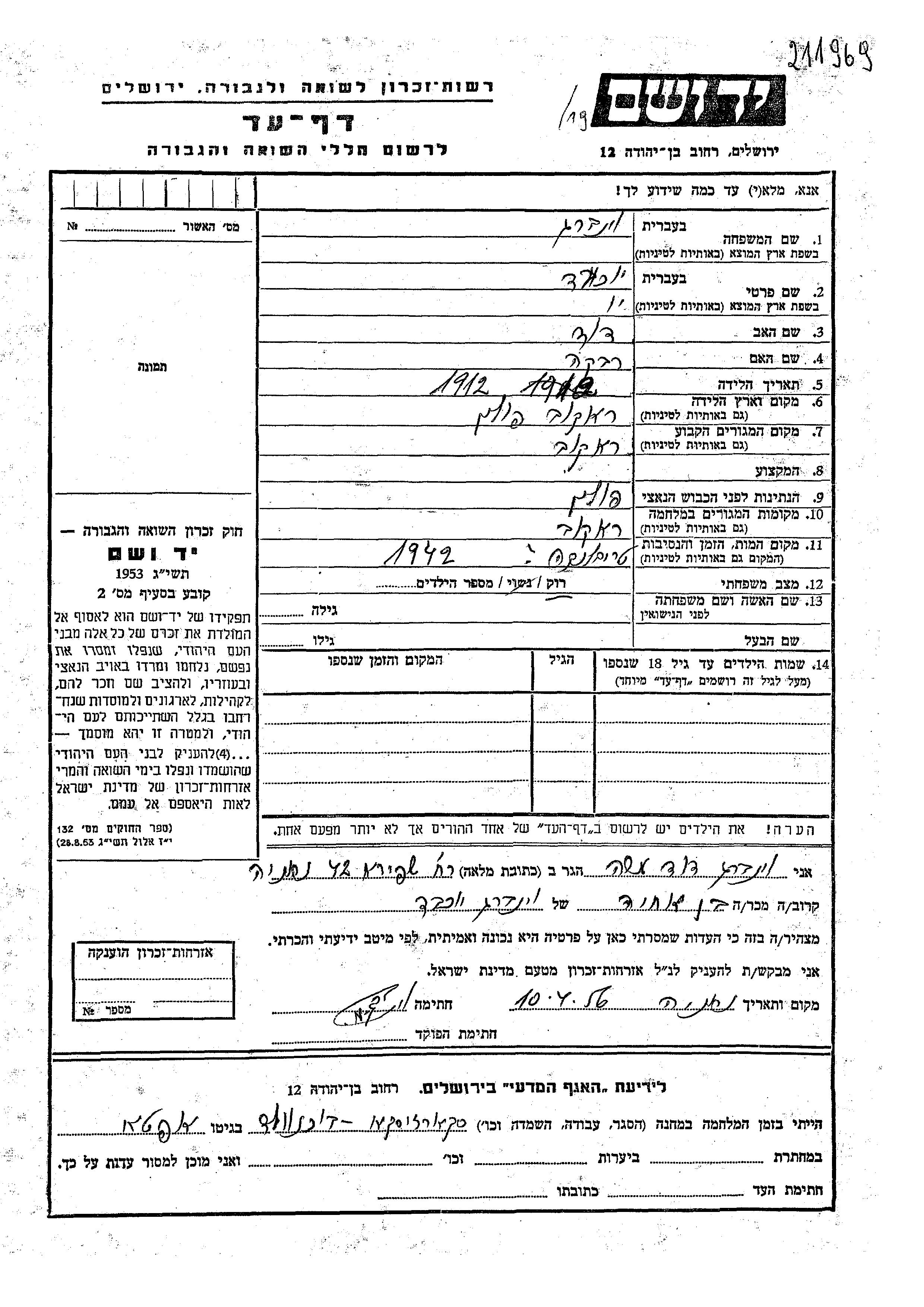 Яд Вашем - Листы свидетельских показаний Мемориального фонда