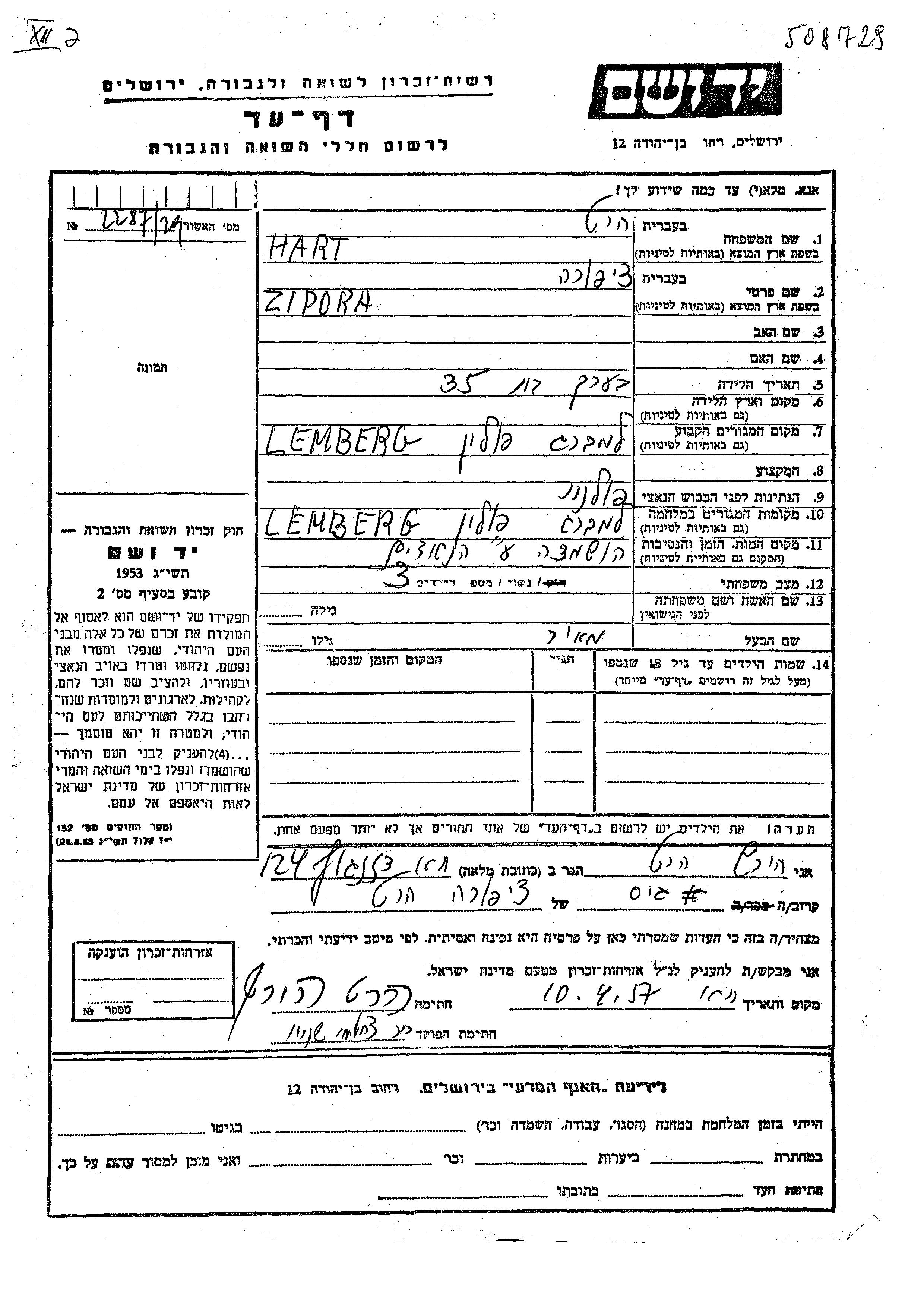 Харт Ципора Лемберг, Польша Лист свидетельских показаний