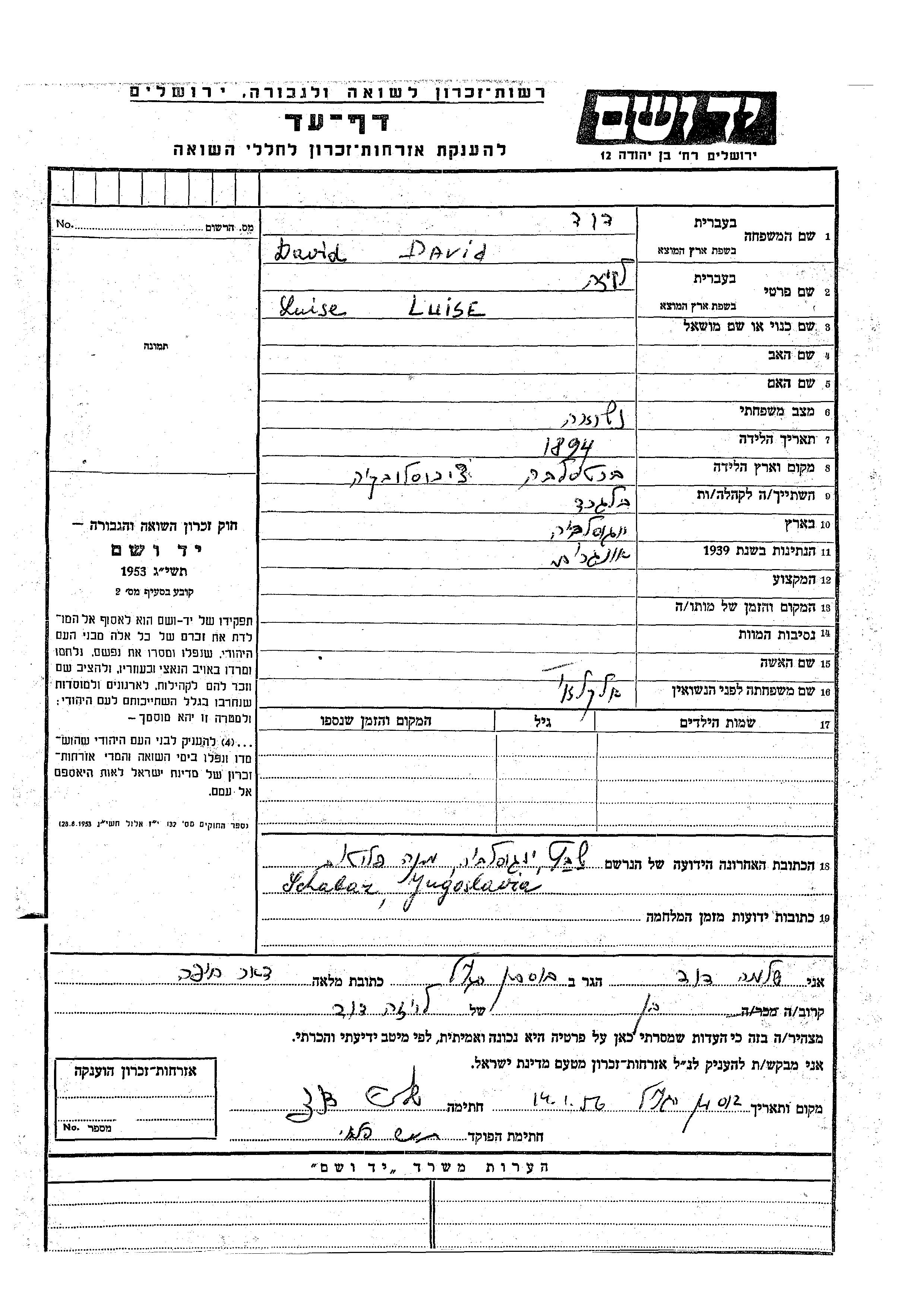 Поиск подателя Листа свидетельских показаний. Поиск по любому имени, включая уменьшительное или прозвище