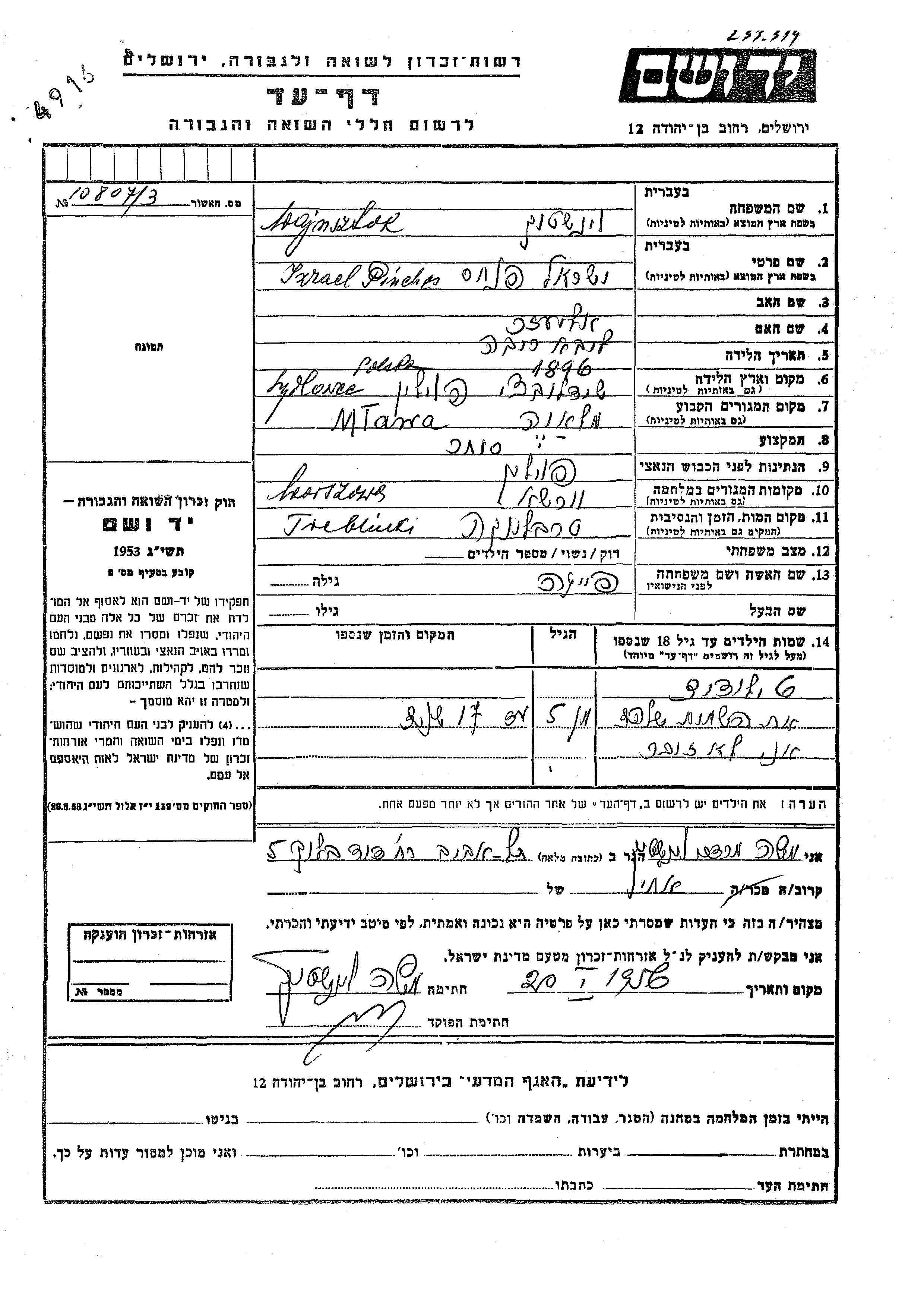 Яд Вашем - Листы свидетельских показаний Мемориального фонда
