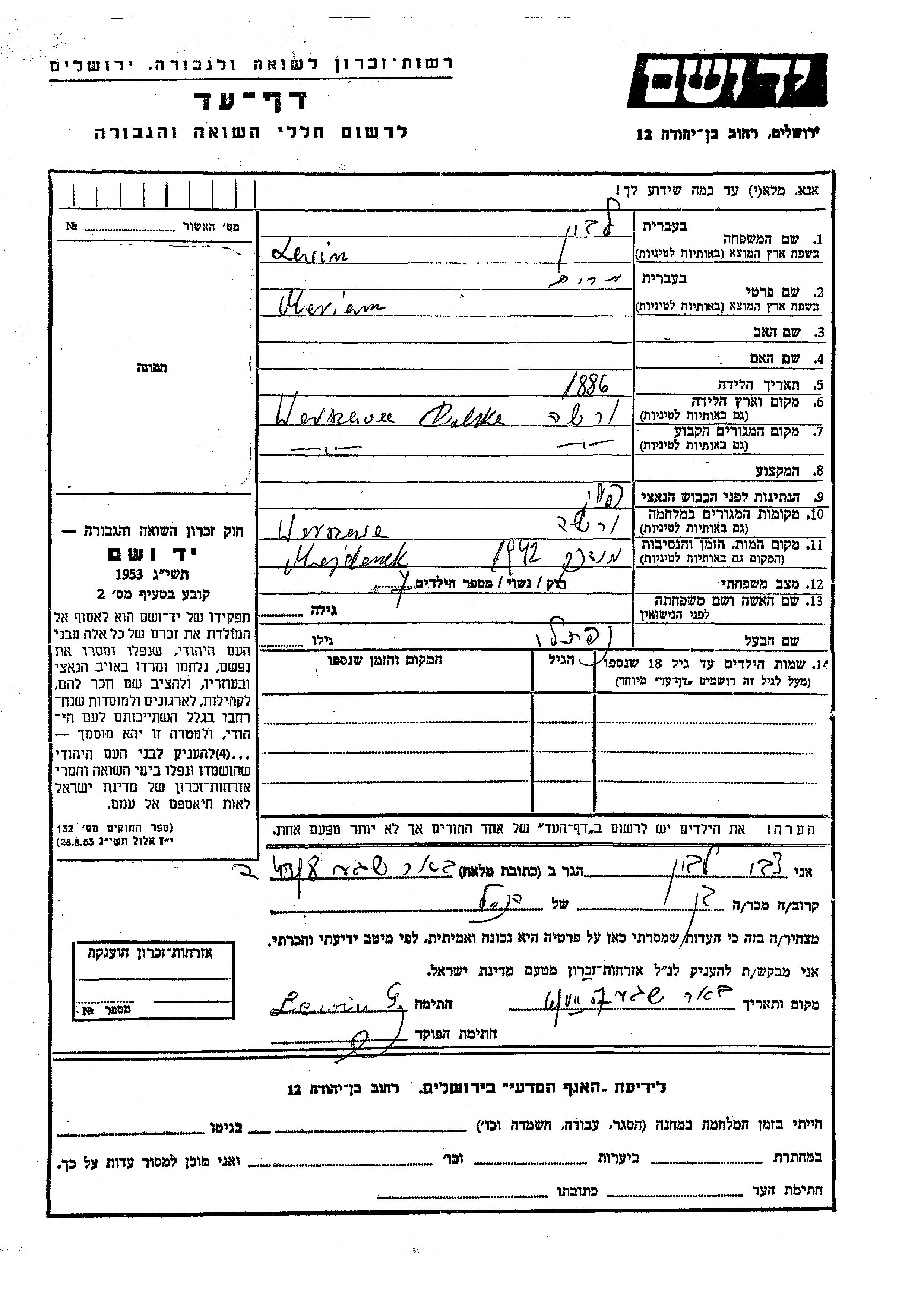 Яд Вашем - Листы свидетельских показаний Мемориального фонда