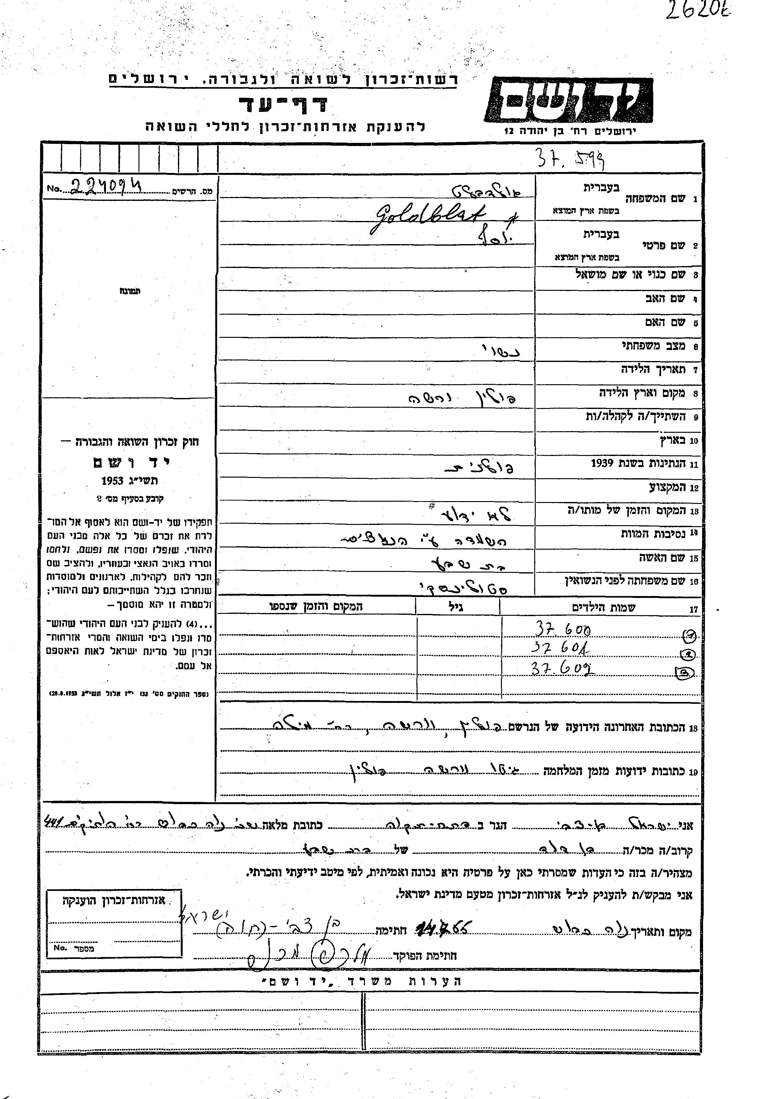Иосеф Гольдблат, место рождения: Варшава, Польша. Женат / замужем. Место во время войны: Варшава, Польша.