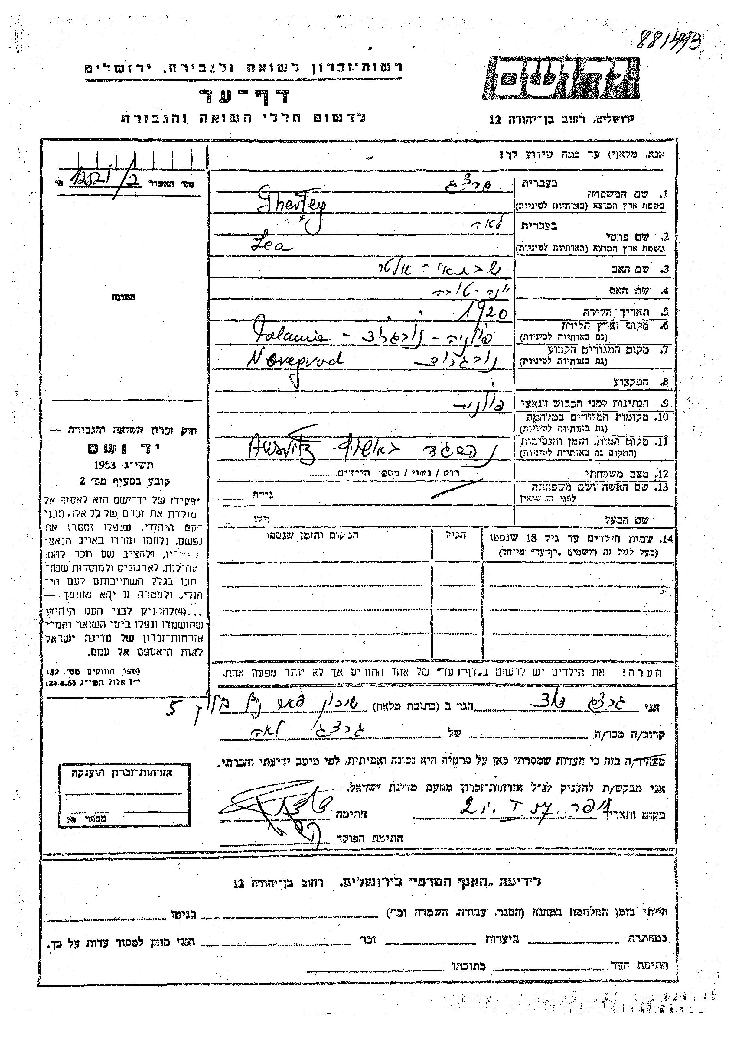 Яд Вашем - Листы свидетельских показаний Мемориального фонда