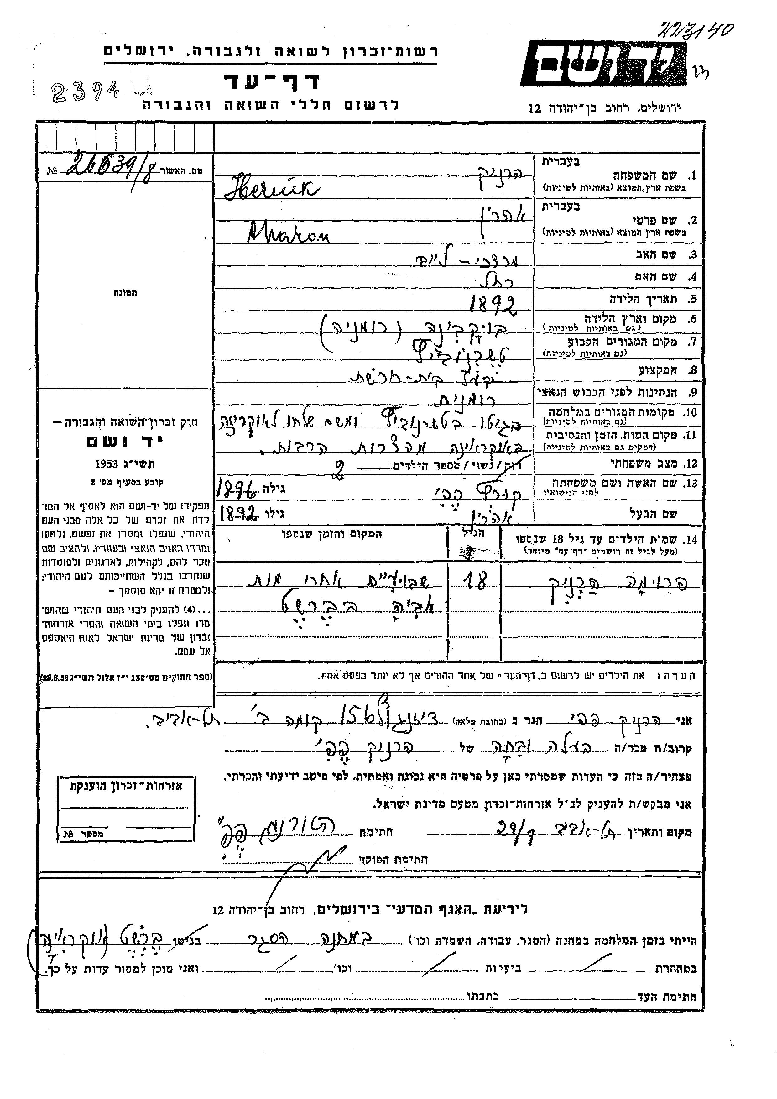 Поиск подателя Листа свидетельских показаний. Поиск по любому имени, включая уменьшительное или прозвище