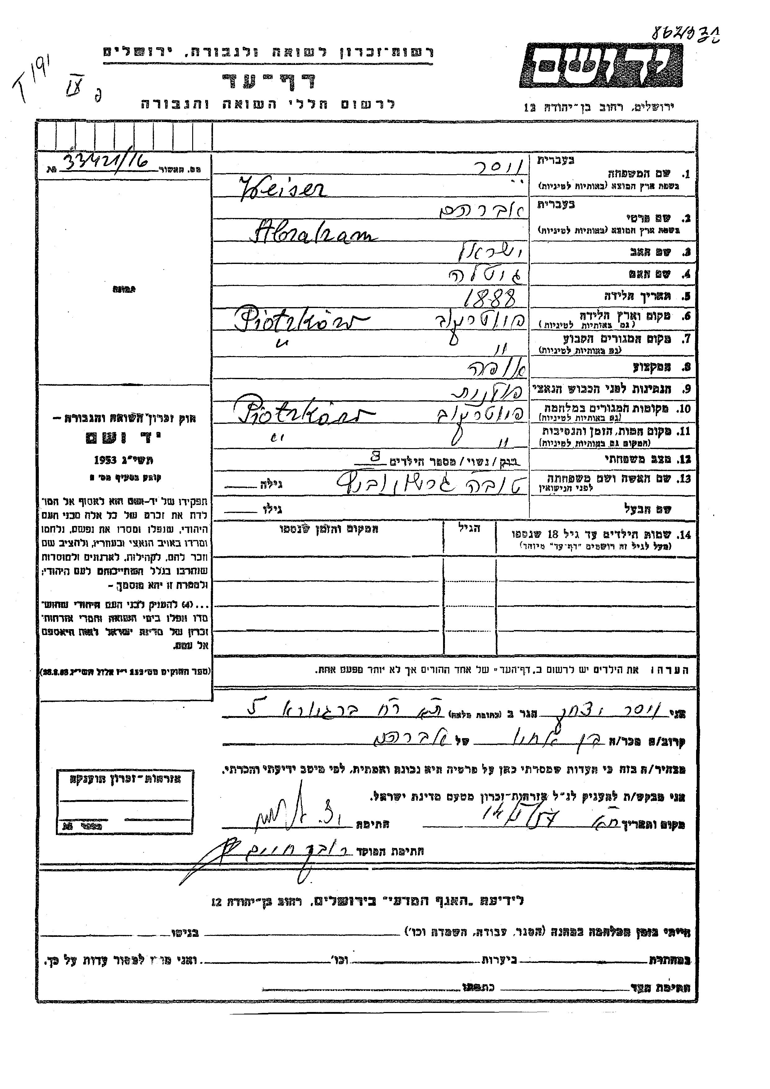 Яд Вашем - Листы свидетельских показаний Мемориального фонда
