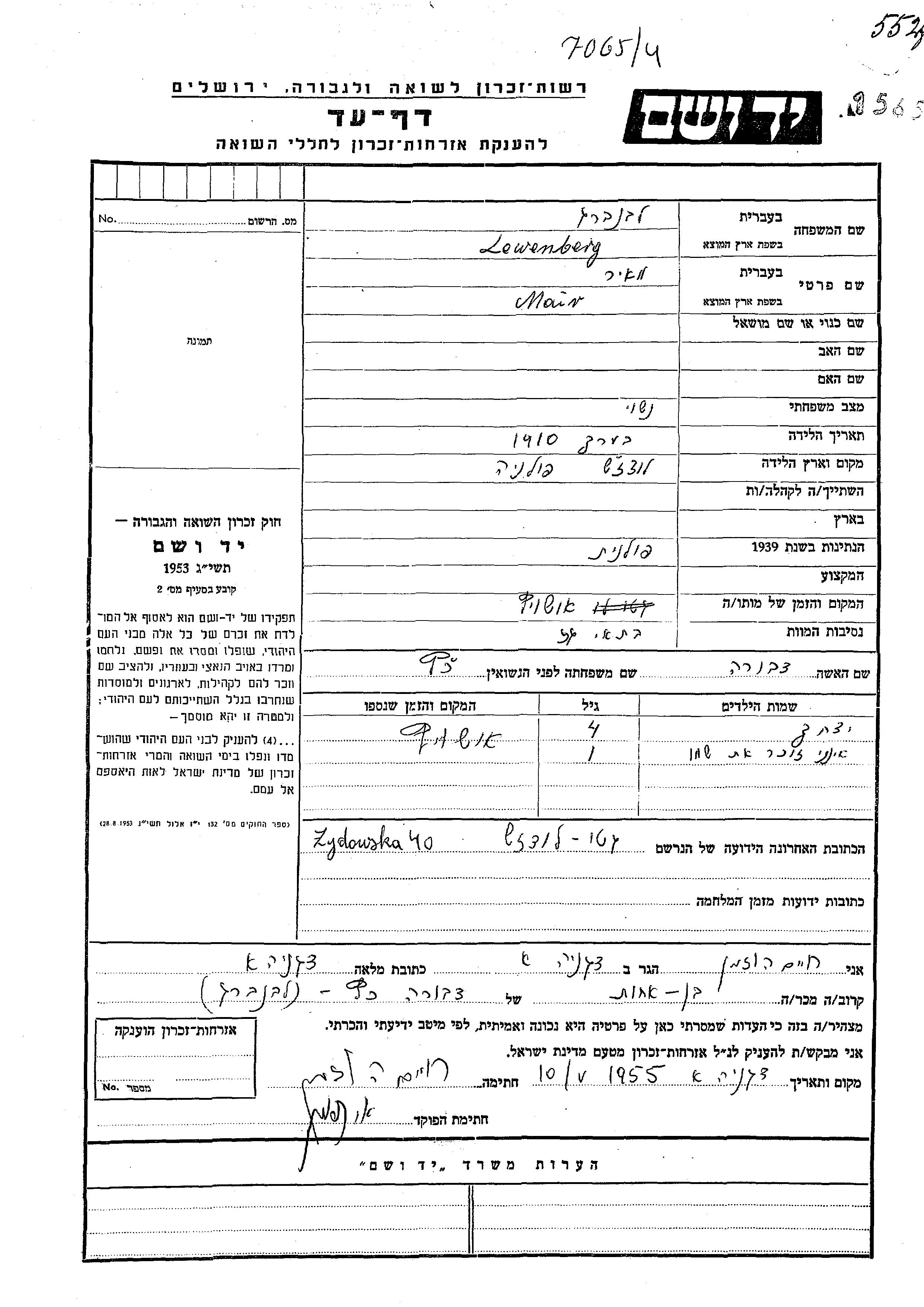 Маир Левенберг Лебенберг, место рождения: Лодзь, Польша. Женат / замужем. Место во время войны: Лодзь, Польша.