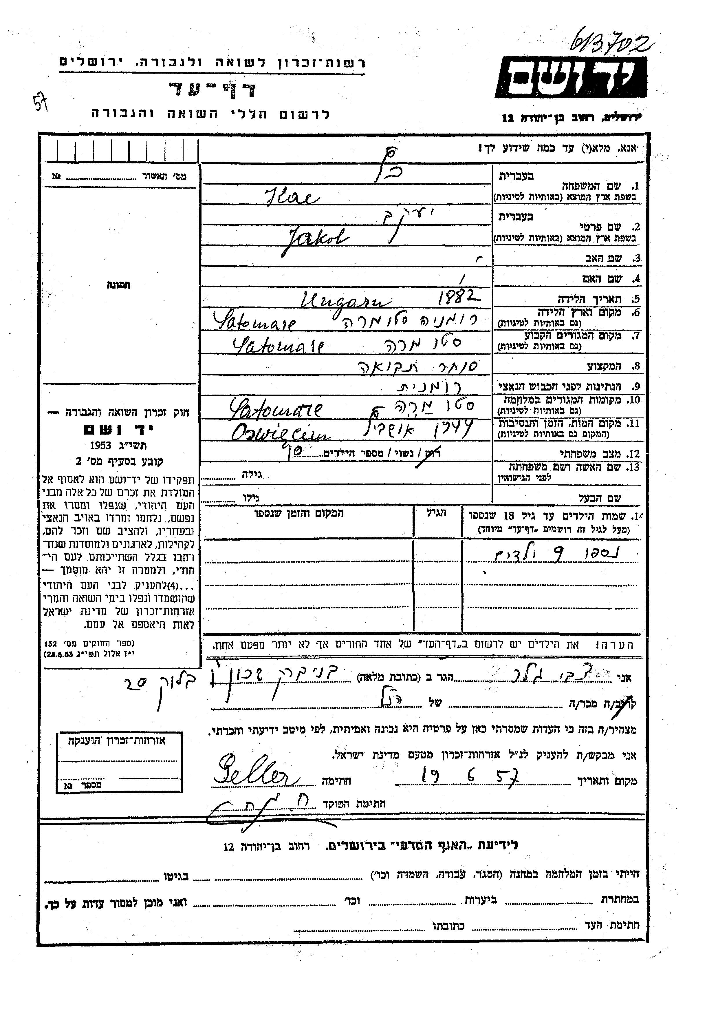 Яд Вашем - Листы свидетельских показаний Мемориального фонда