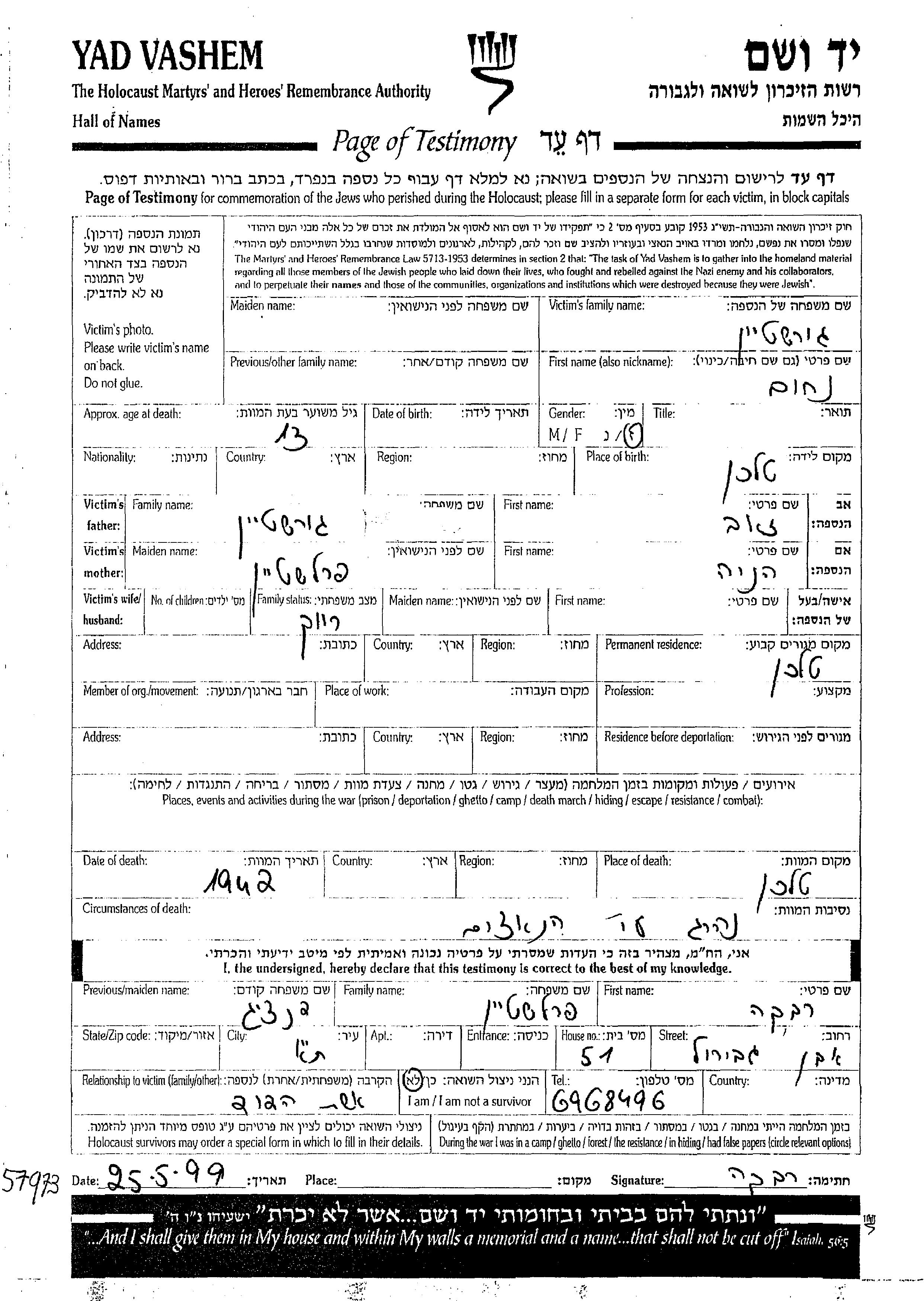 Яд Вашем - Листы свидетельских показаний Мемориального фонда