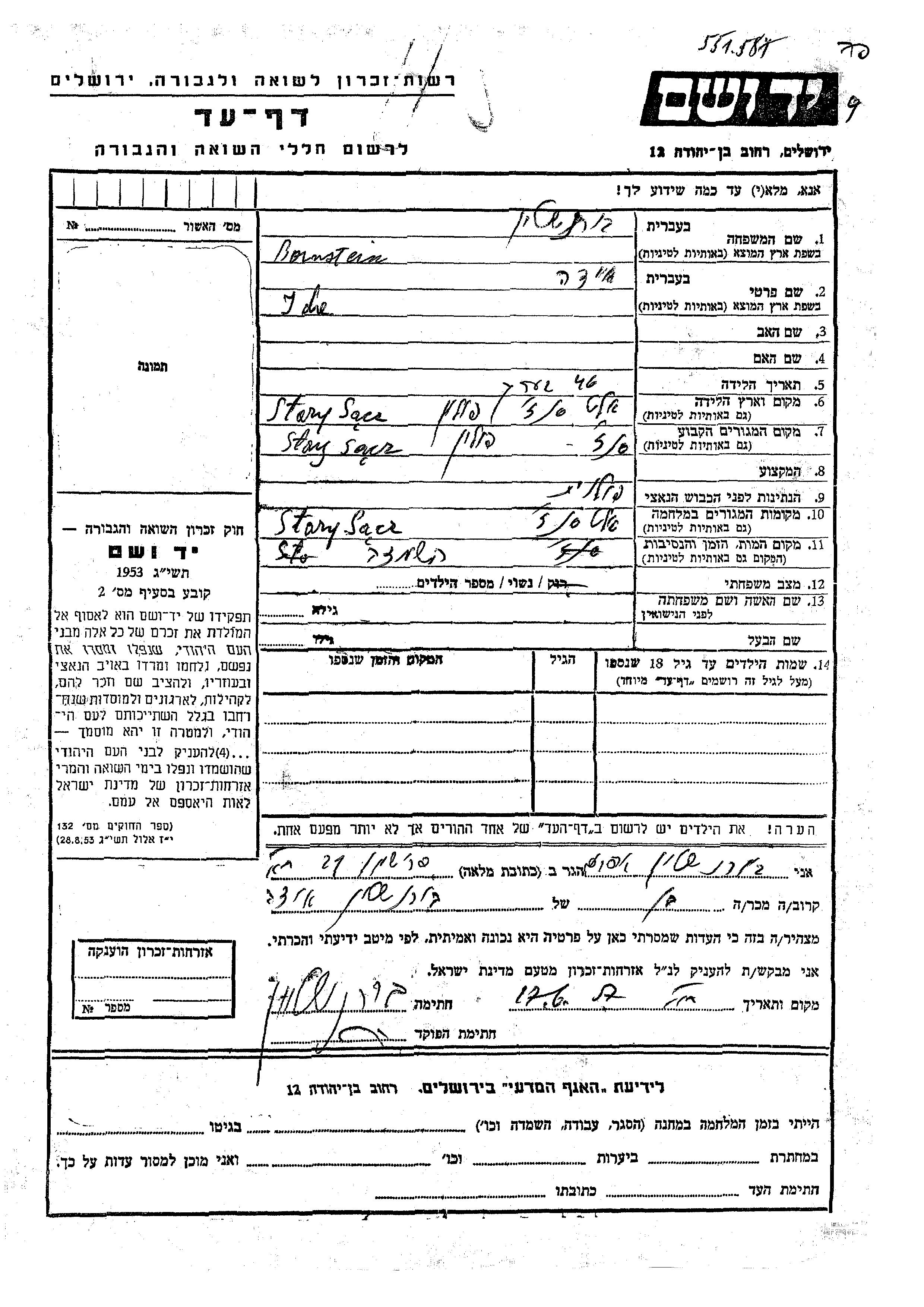 Яд Вашем - Листы свидетельских показаний Мемориального фонда