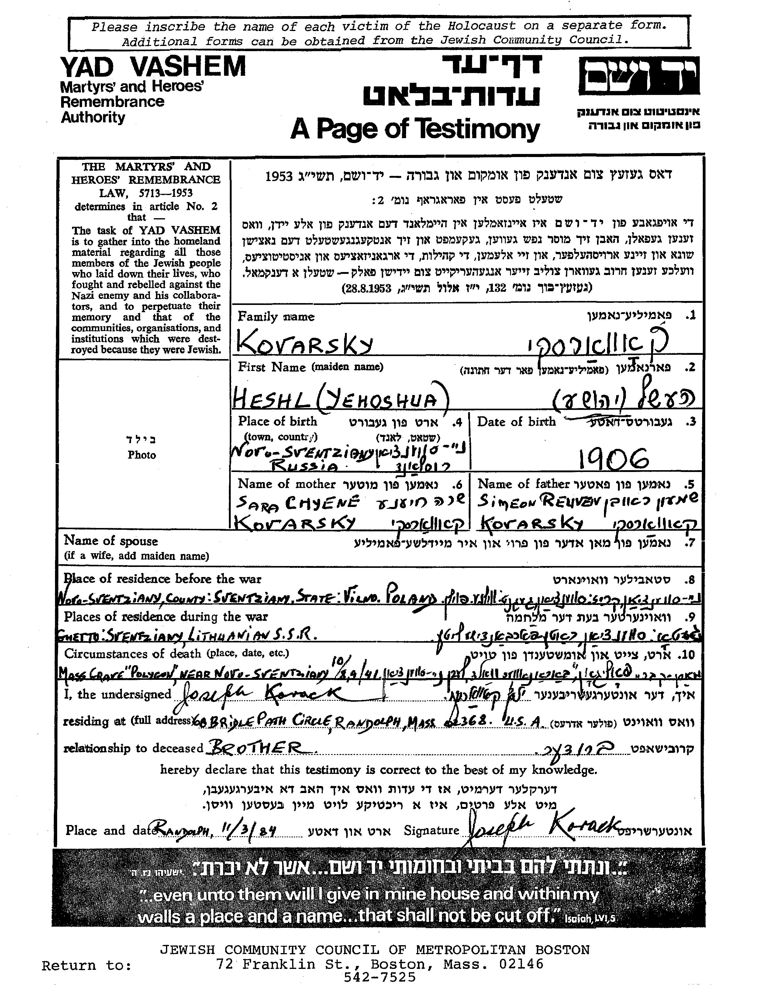 Во время Шоа евреев уничтожали разными способами: газовые камеры, расстрелы, их заживо хоронили или сжигали, непосильным принудительным трудом, голодом, эпидемиями, отсутствием минимальных гигиенических условий и медицинского обслуживания, и т.д. Некоторые евреи добровольно расстались со своей жизнью, чтобы избежать ареста и дальнейших преследований или чтобы покончить с безысходностью и бесконечными страданиями.
