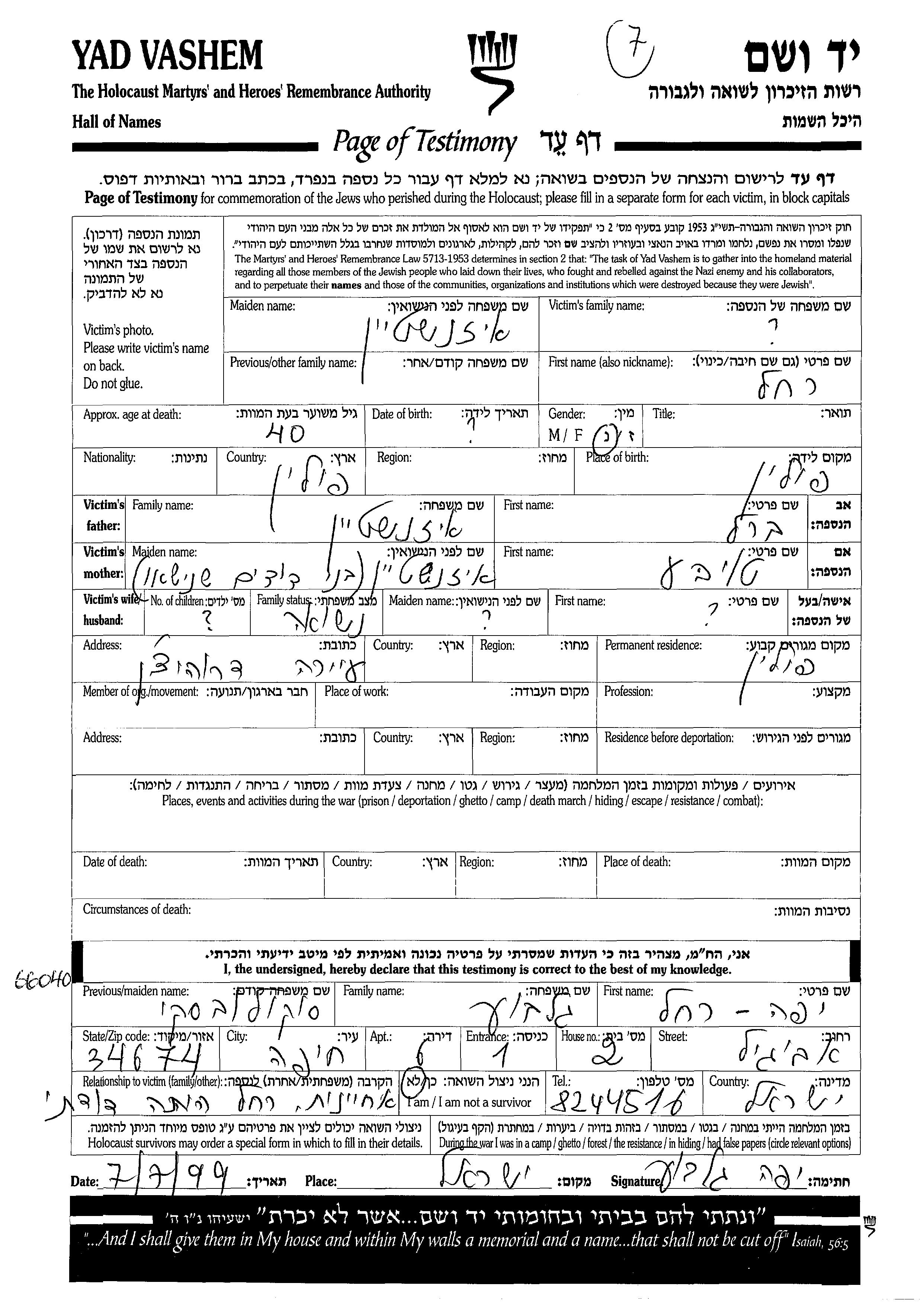Яд Вашем - Листы свидетельских показаний Мемориального фонда