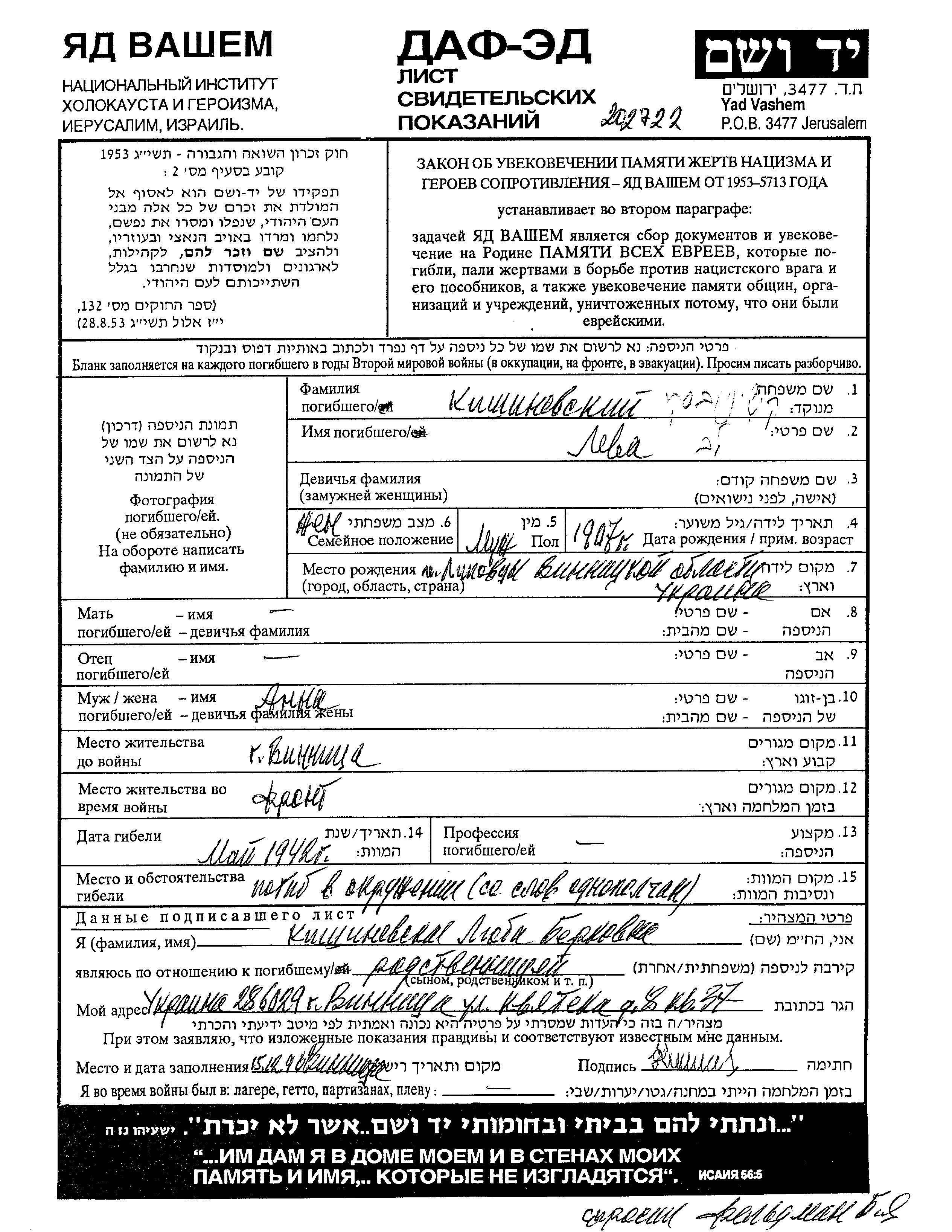 Поиск подателя Листа свидетельских показаний. Поиск по любому имени, включая уменьшительное или прозвище