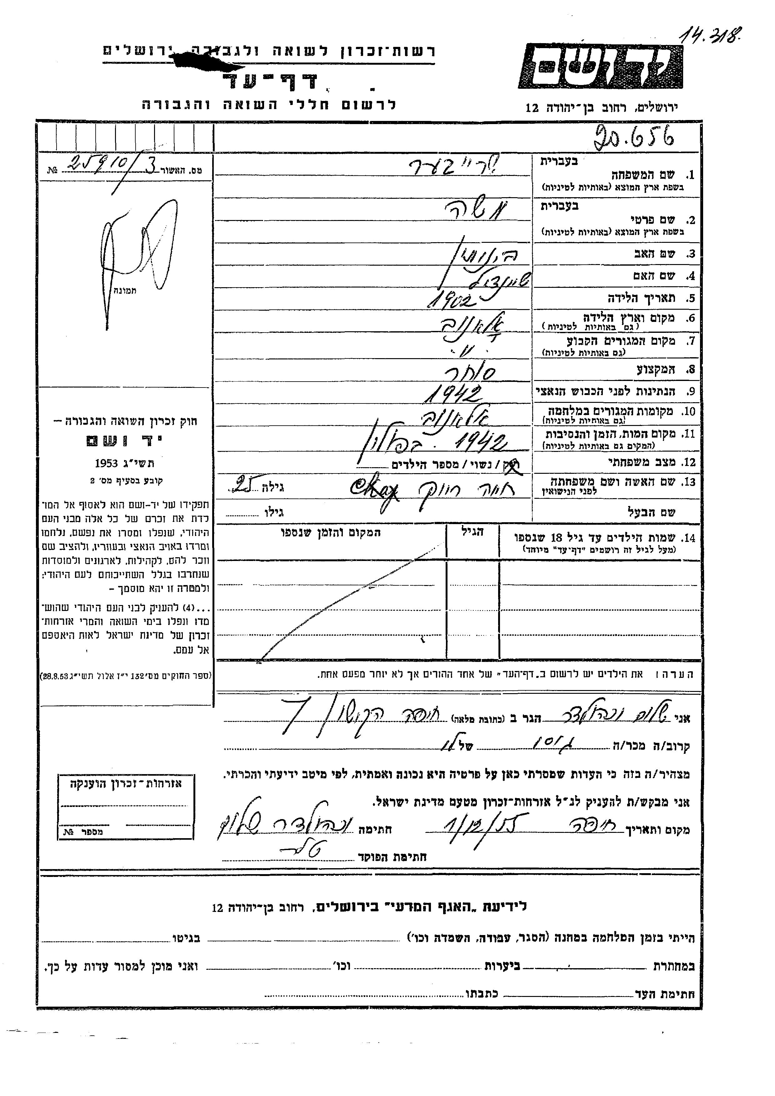 Яд Вашем - Листы свидетельских показаний Мемориального фонда
