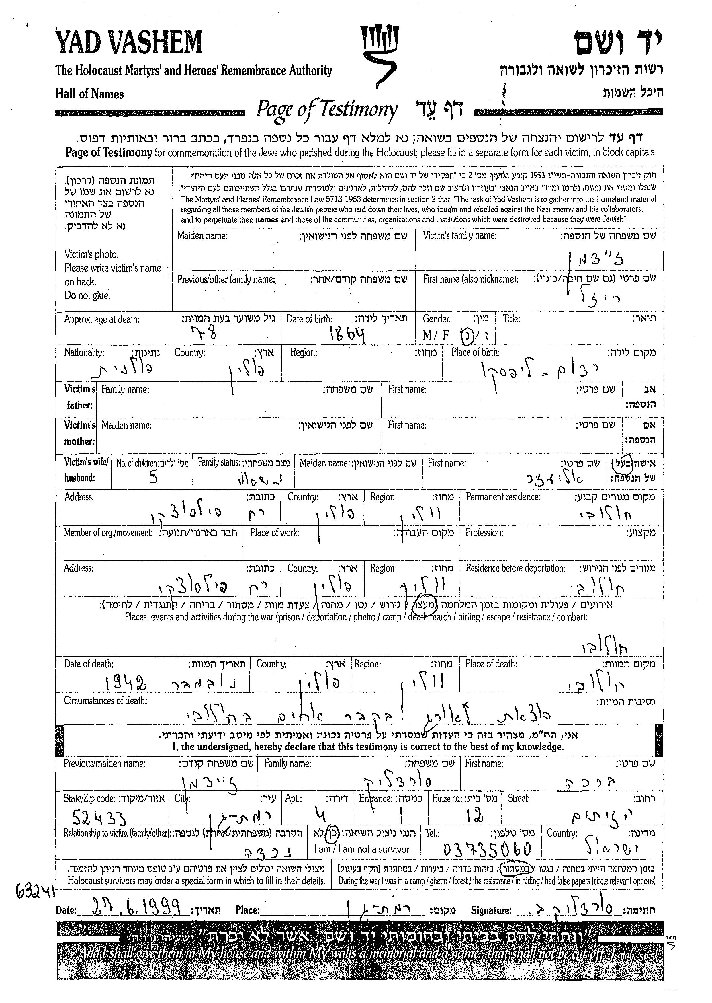 Яд Вашем - Листы свидетельских показаний Мемориального фонда