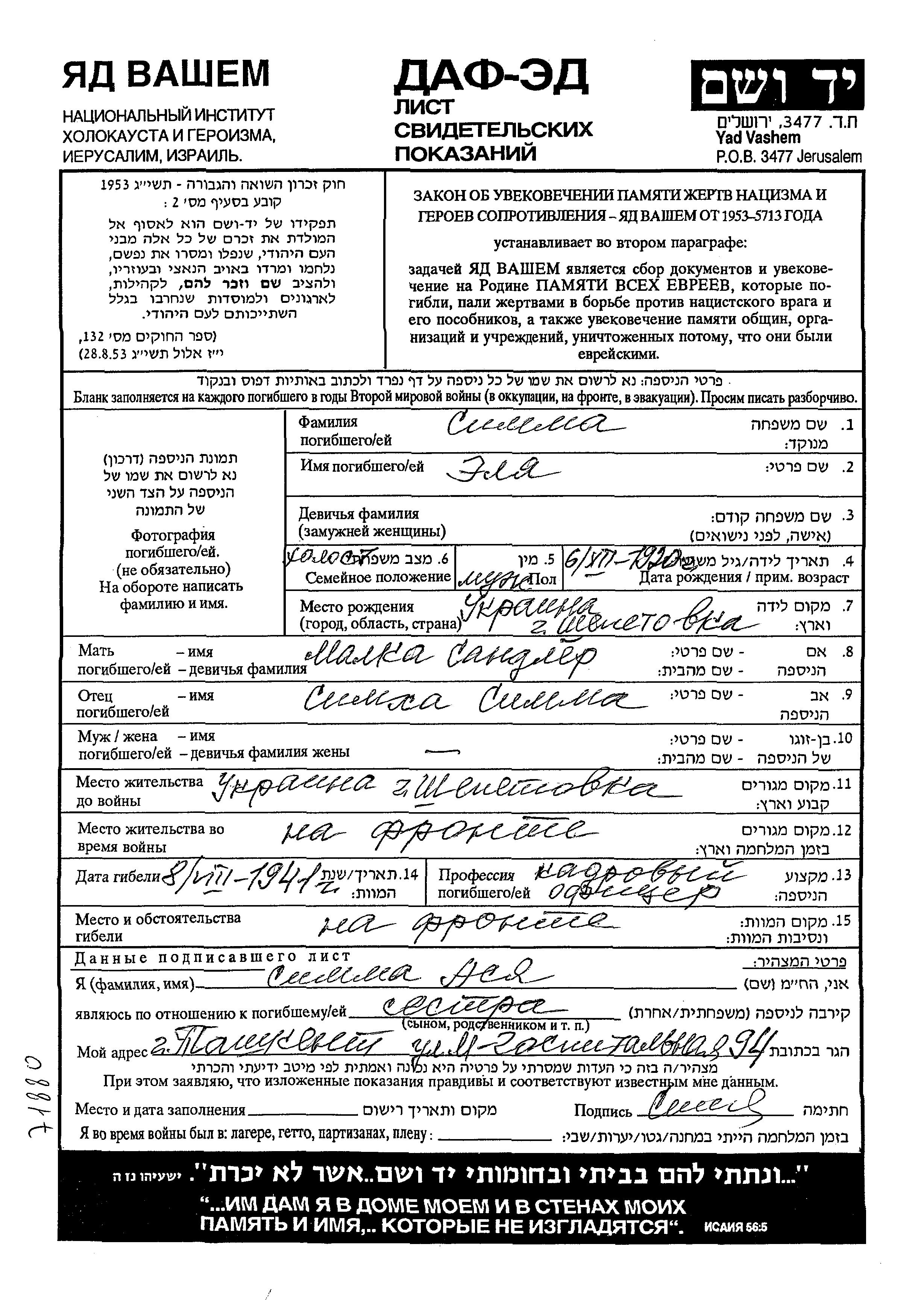 Поиск подателя Листа свидетельских показаний. Поиск по любому имени, включая уменьшительное или прозвище