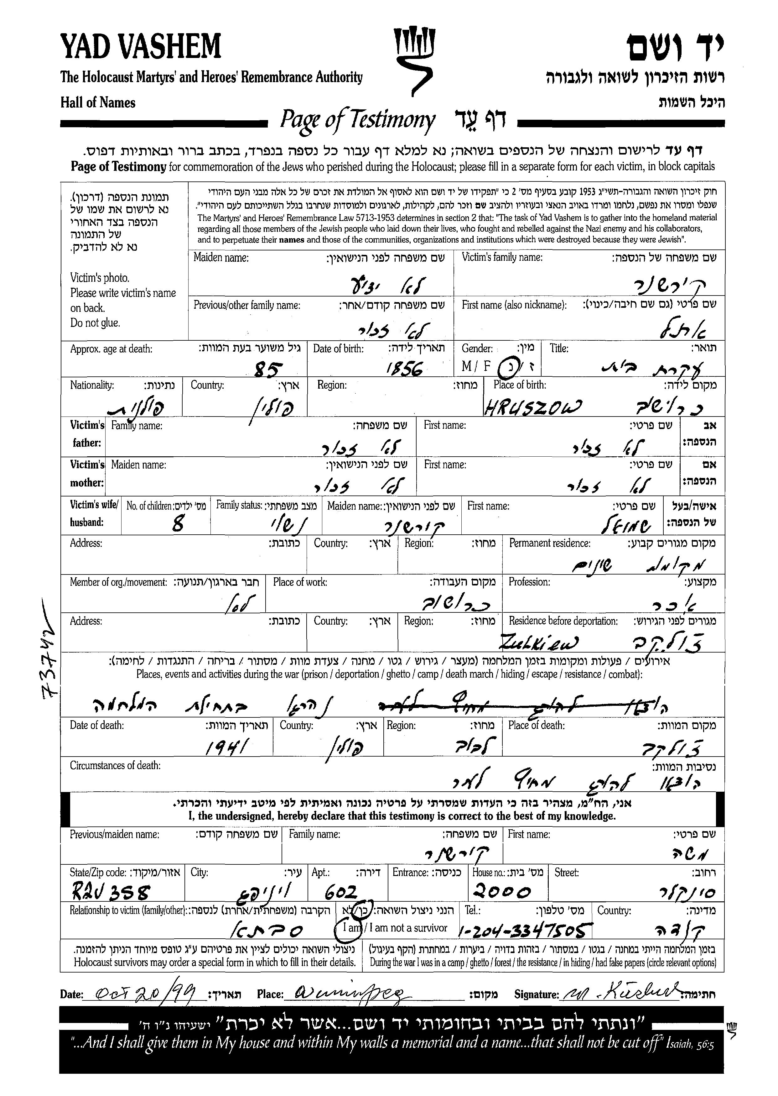 Яд Вашем - Листы свидетельских показаний Мемориального фонда
