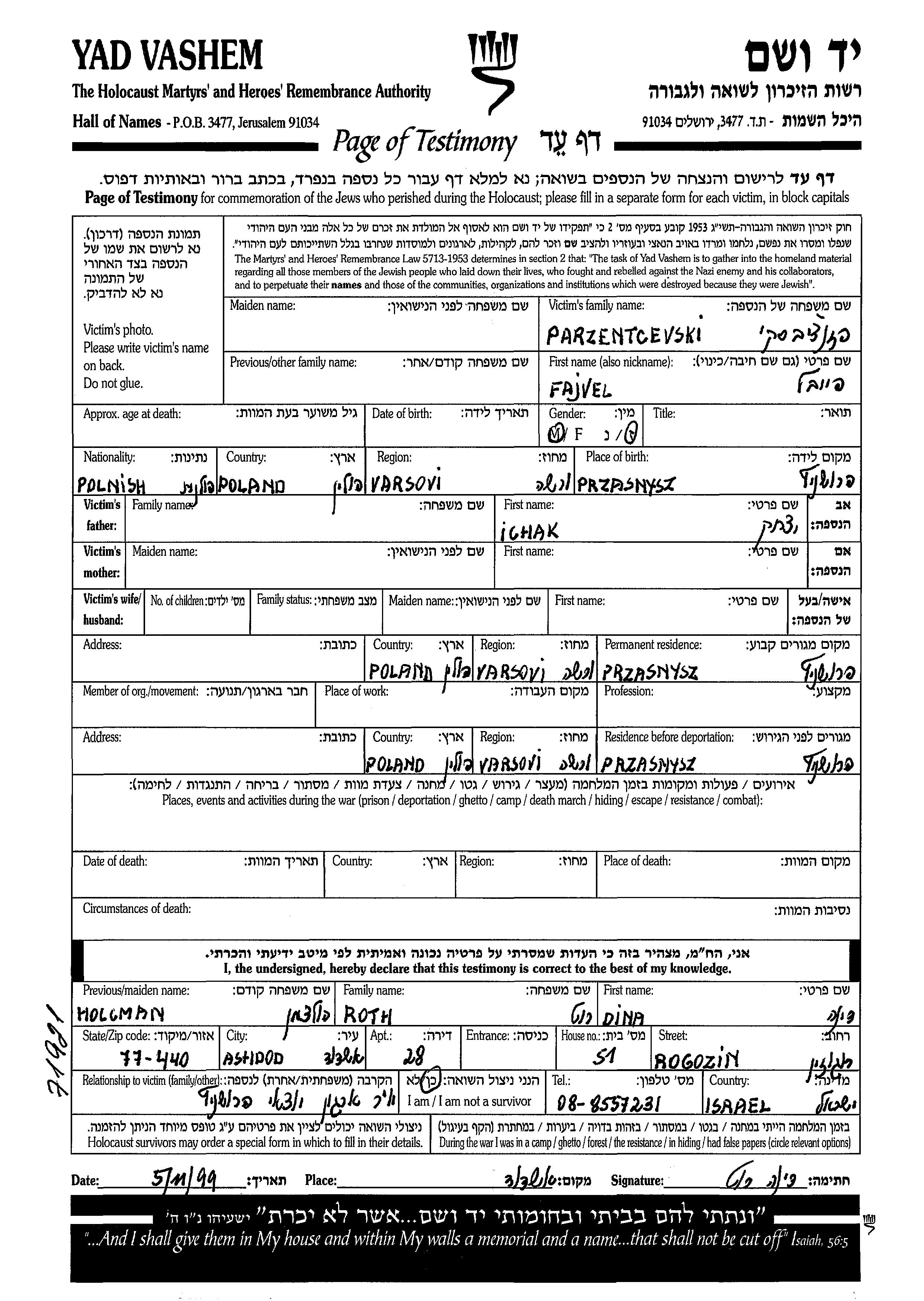 Яд Вашем - Листы свидетельских показаний Мемориального фонда