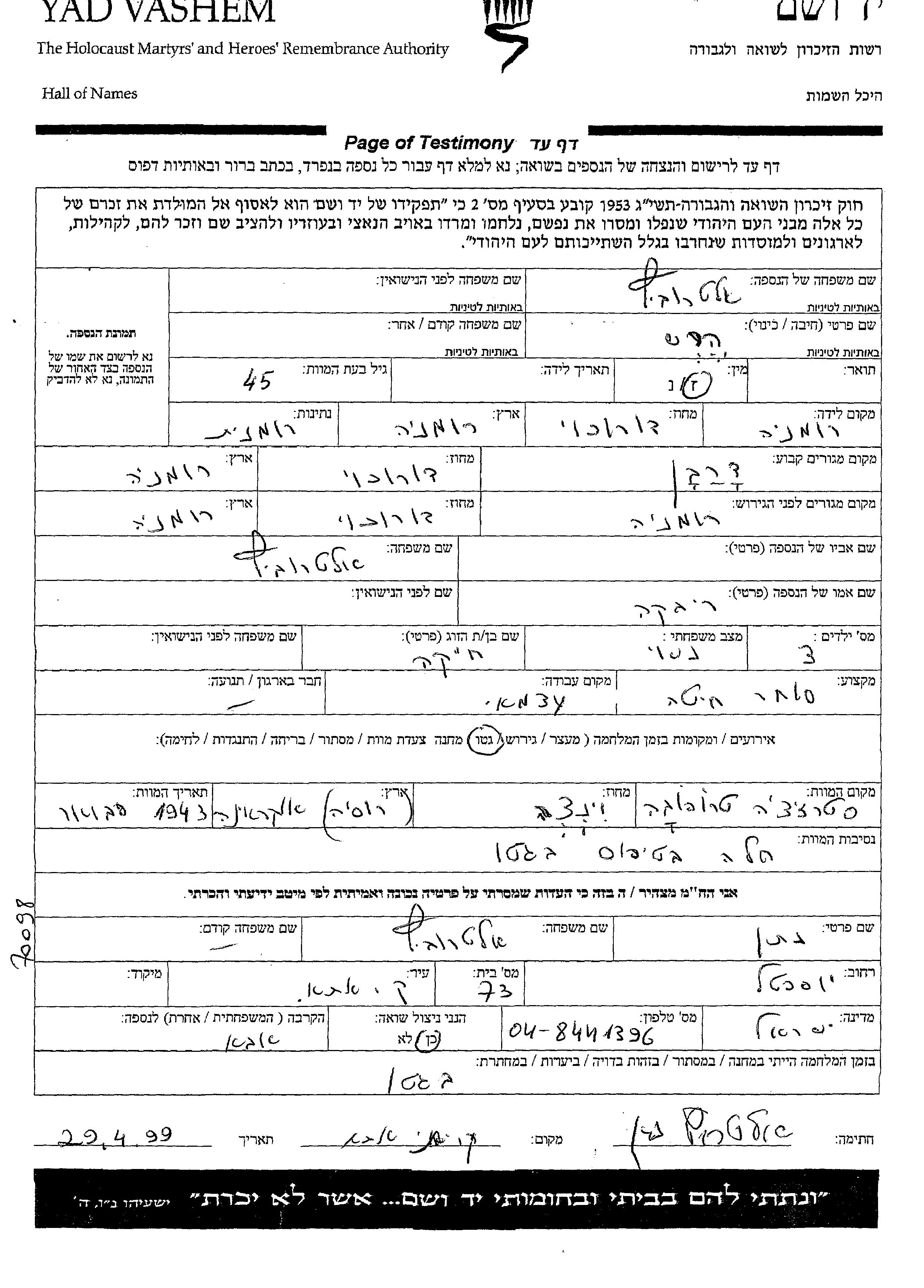 Яд Вашем - Листы свидетельских показаний Мемориального фонда