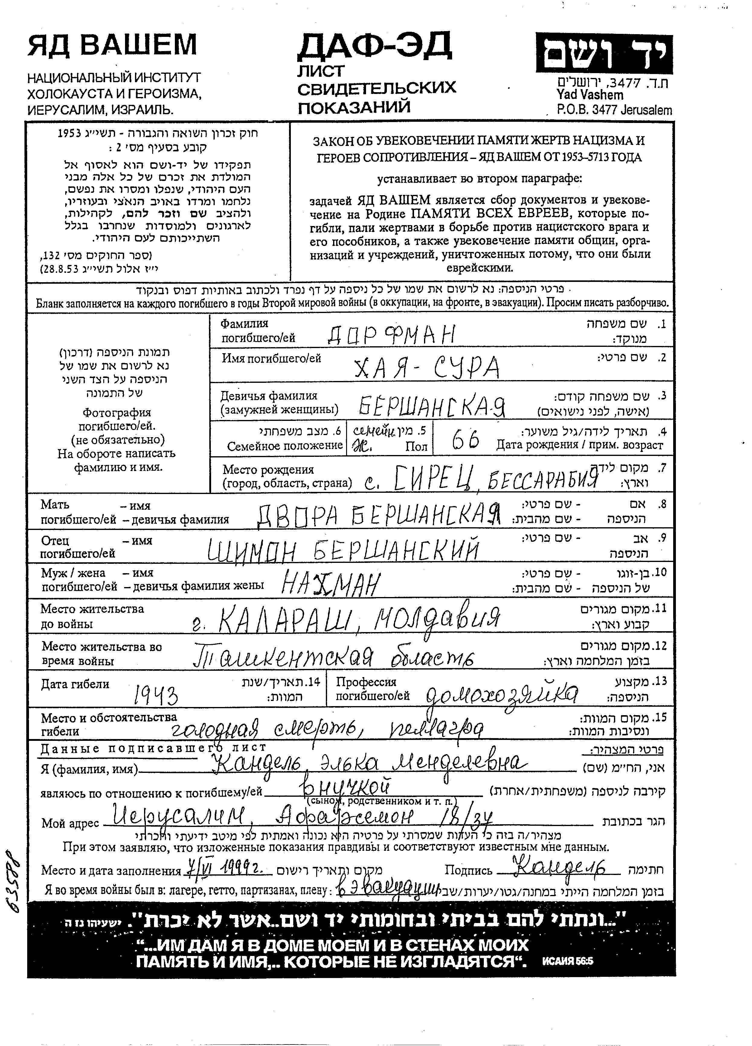 Поиск подателя Листа свидетельских показаний. Поиск по любому имени, включая уменьшительное или прозвище