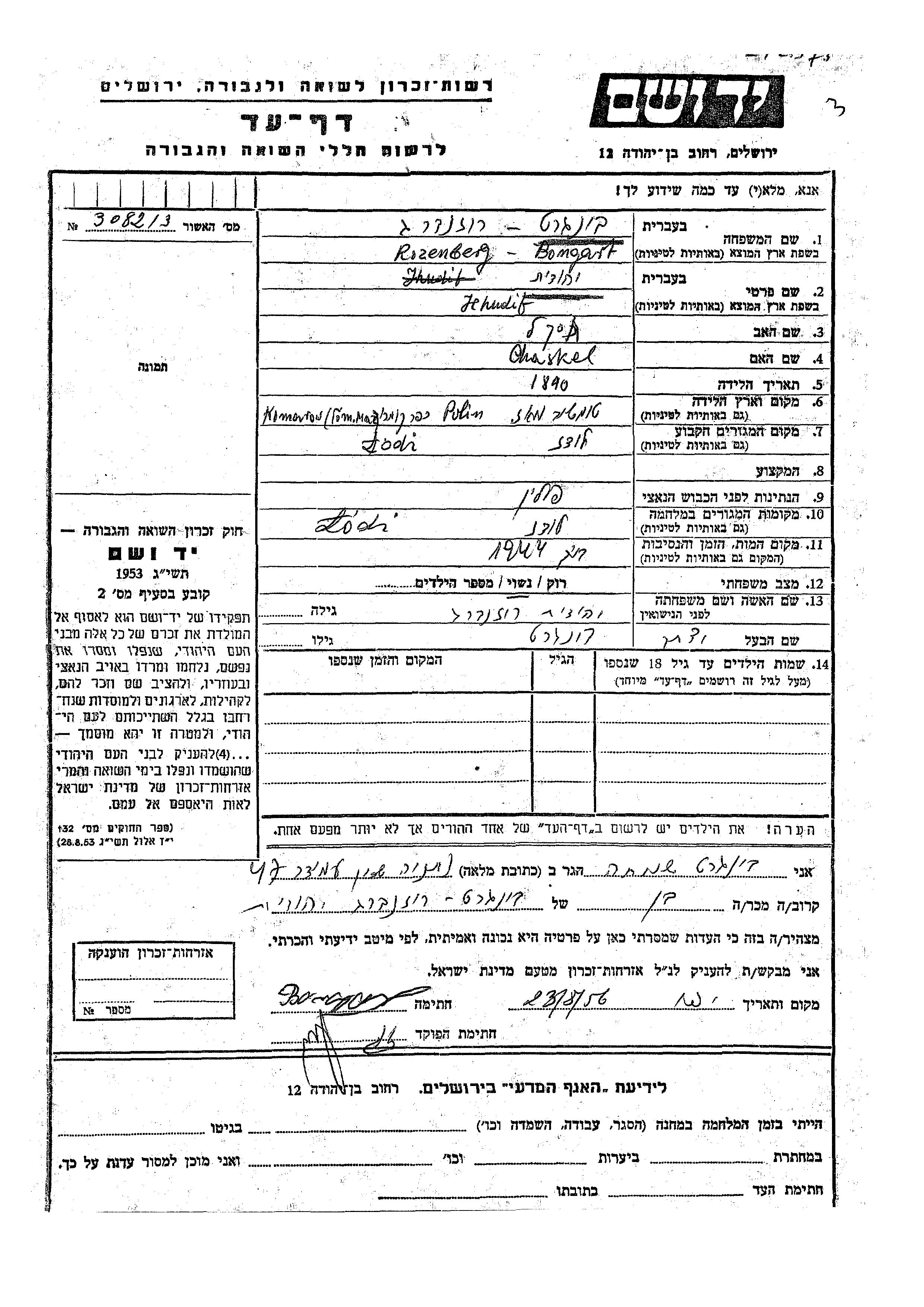 Бонгарт Иегудит 1890 Лодзь, Польша Лист свидетельских показаний