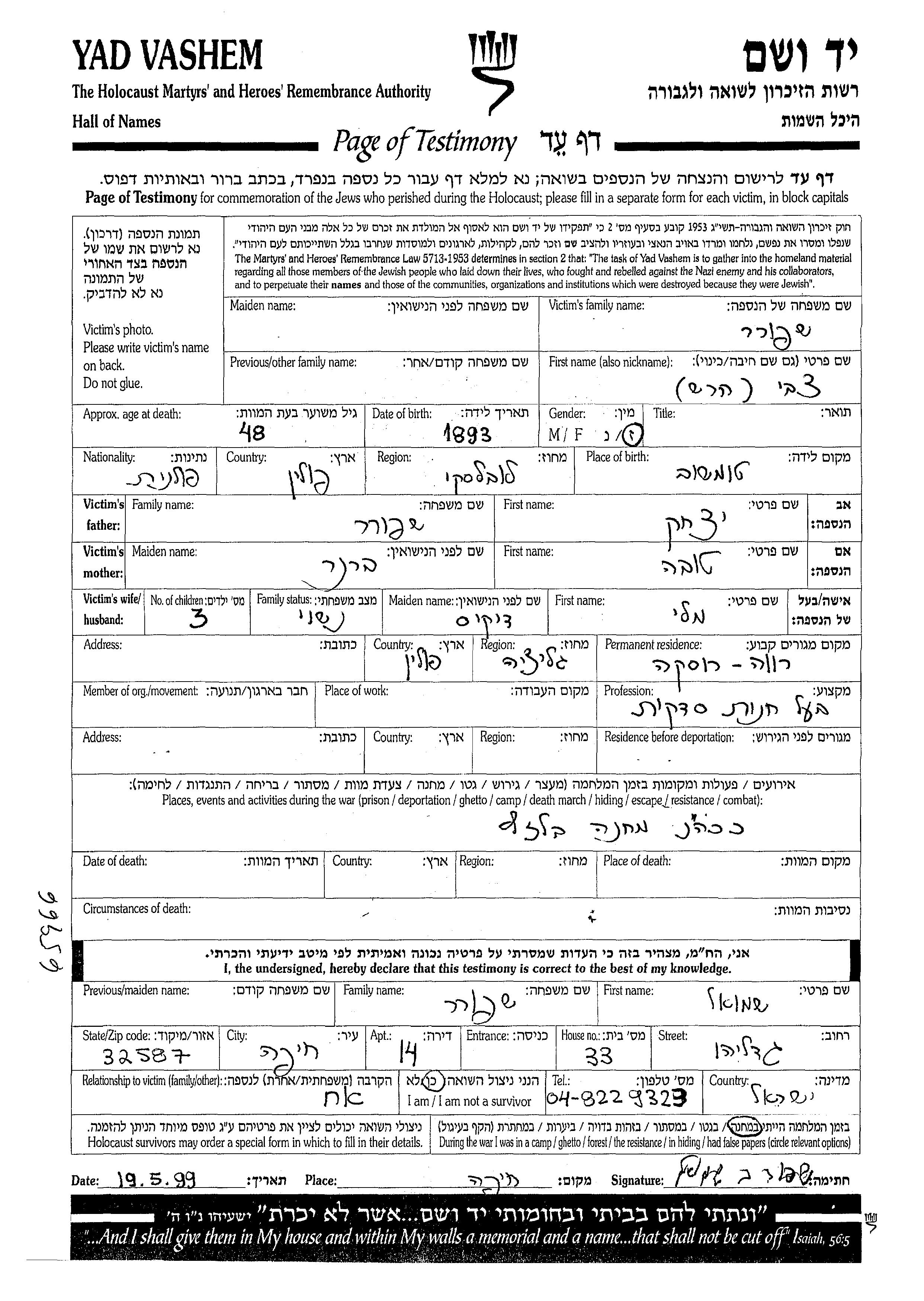 Яд Вашем - Листы свидетельских показаний Мемориального фонда