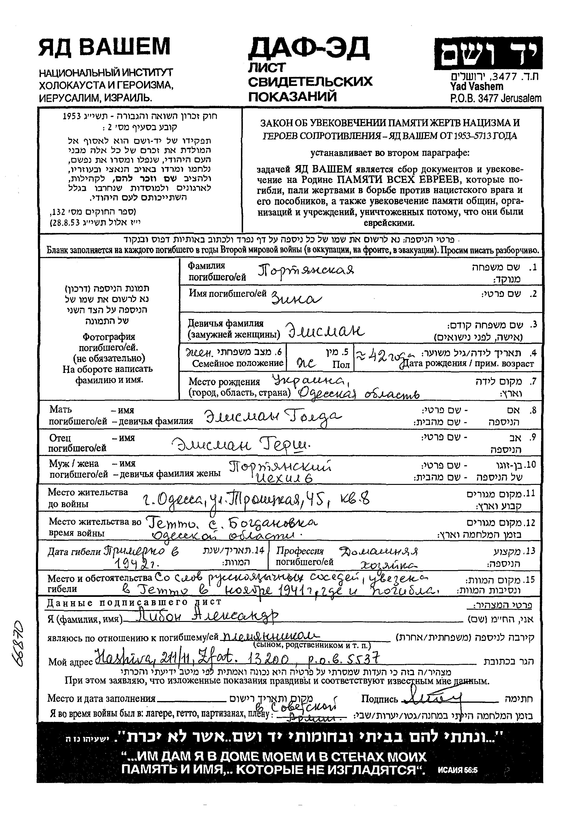 Во время Шоа евреев уничтожали разными способами: газовые камеры, расстрелы, их заживо хоронили или сжигали, непосильным принудительным трудом, голодом, эпидемиями, отсутствием минимальных гигиенических условий и медицинского обслуживания, и т.д. Некоторые евреи добровольно расстались со своей жизнью, чтобы избежать ареста и дальнейших преследований или чтобы покончить с безысходностью и бесконечными страданиями. Десятки тысяч еврейских солдат, служивших в Советской армии и попавших в плен, , были отобраны как евреи и убиты. Многие были зарегистрированы как «пропавшие без вести».