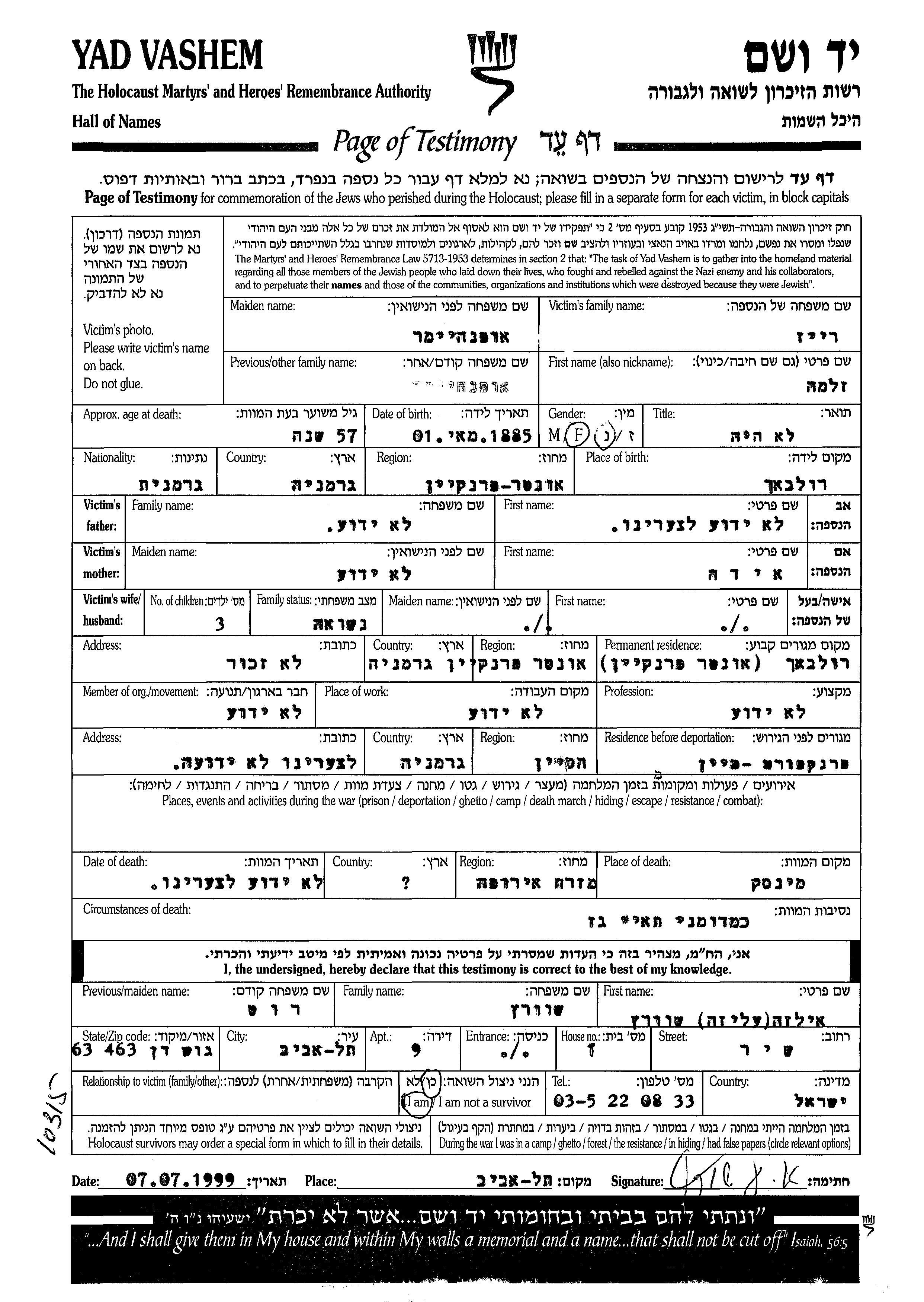 Яд Вашем - Листы свидетельских показаний Мемориального фонда