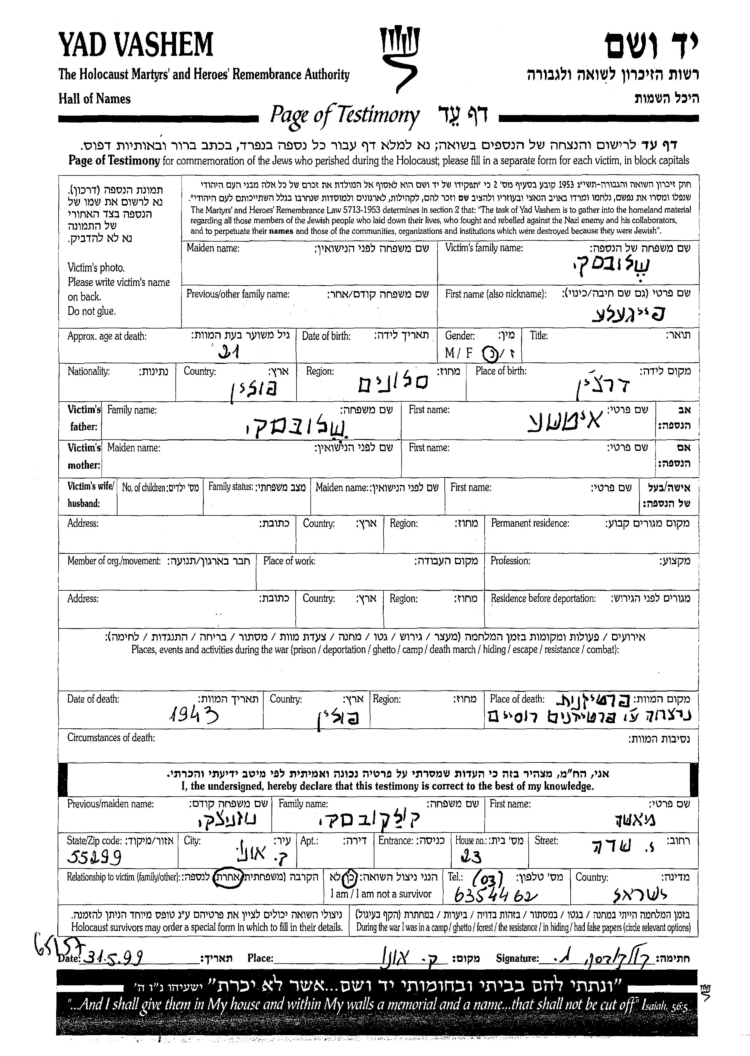 Поиск подателя Листа свидетельских показаний. Поиск по любому имени, включая уменьшительное или прозвище