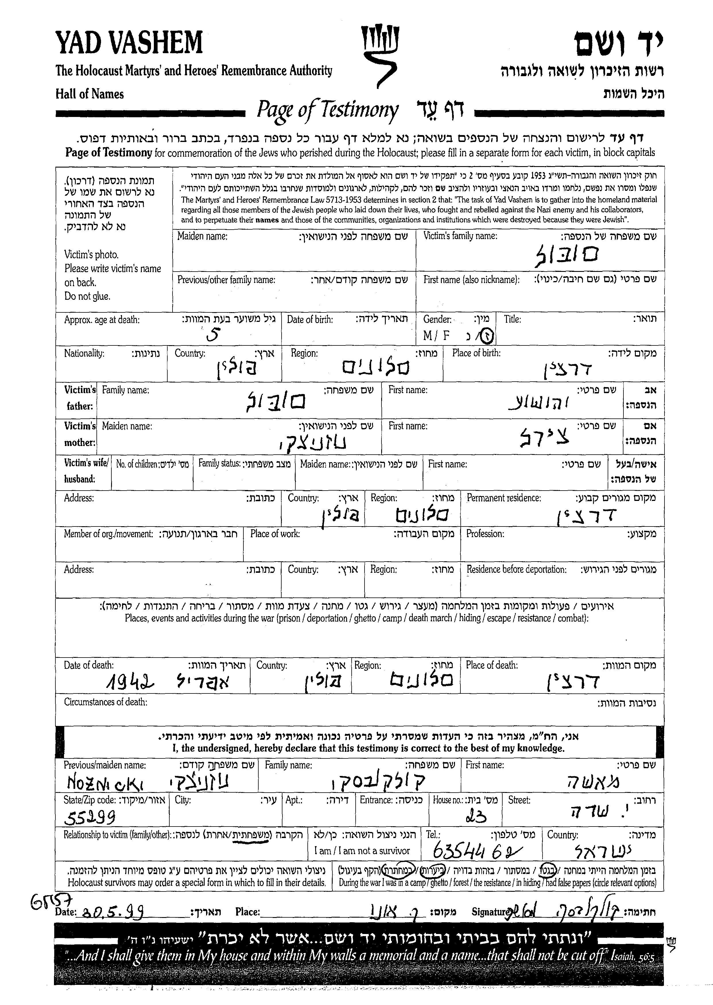 Поиск подателя Листа свидетельских показаний. Поиск по любому имени, включая уменьшительное или прозвище