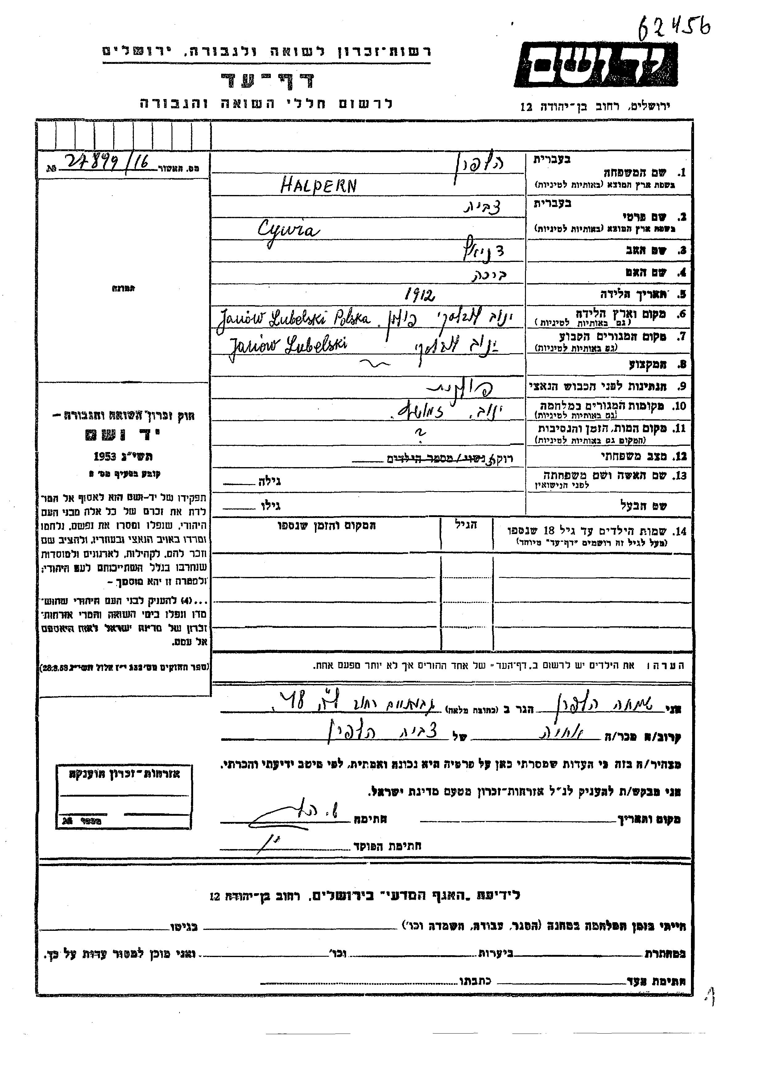 Хальперн Цивия 1912 Янув, Польша Лист свидетельских показаний
