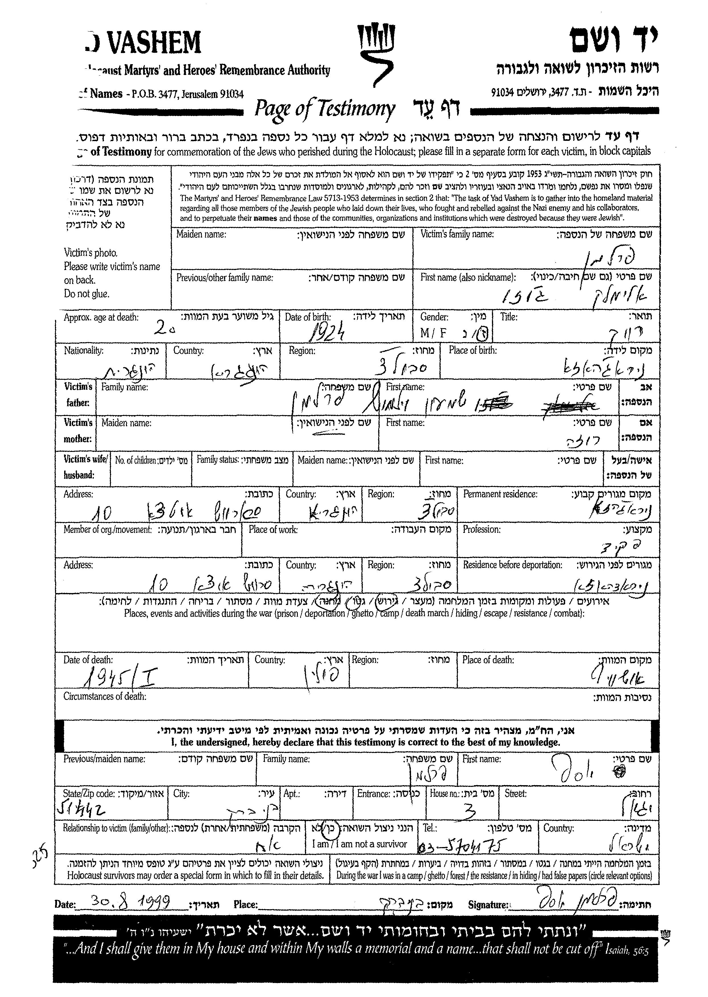 Яд Вашем - Листы свидетельских показаний Мемориального фонда