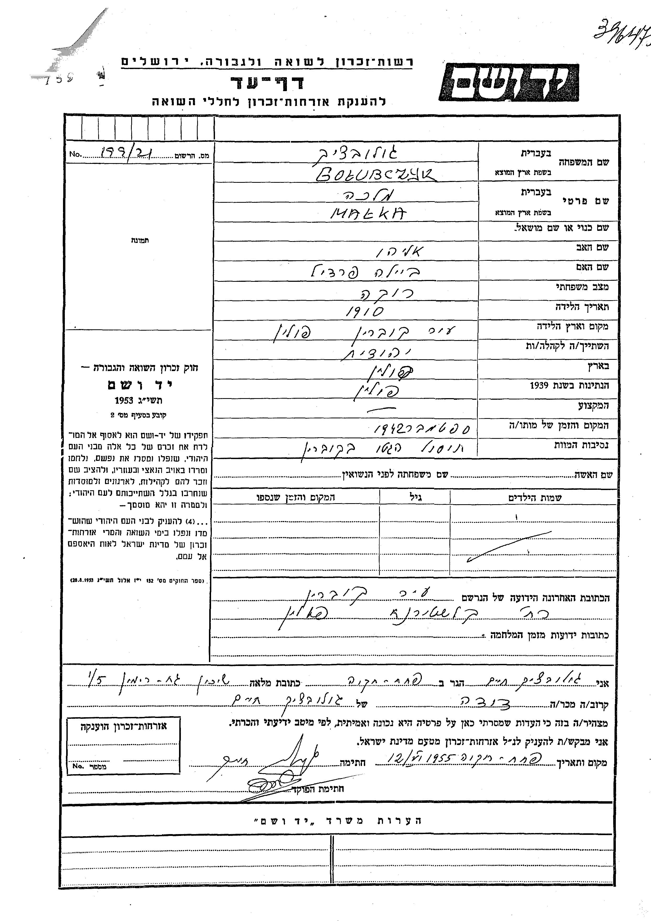 Поиск подателя Листа свидетельских показаний. Поиск по любому имени, включая уменьшительное или прозвище
