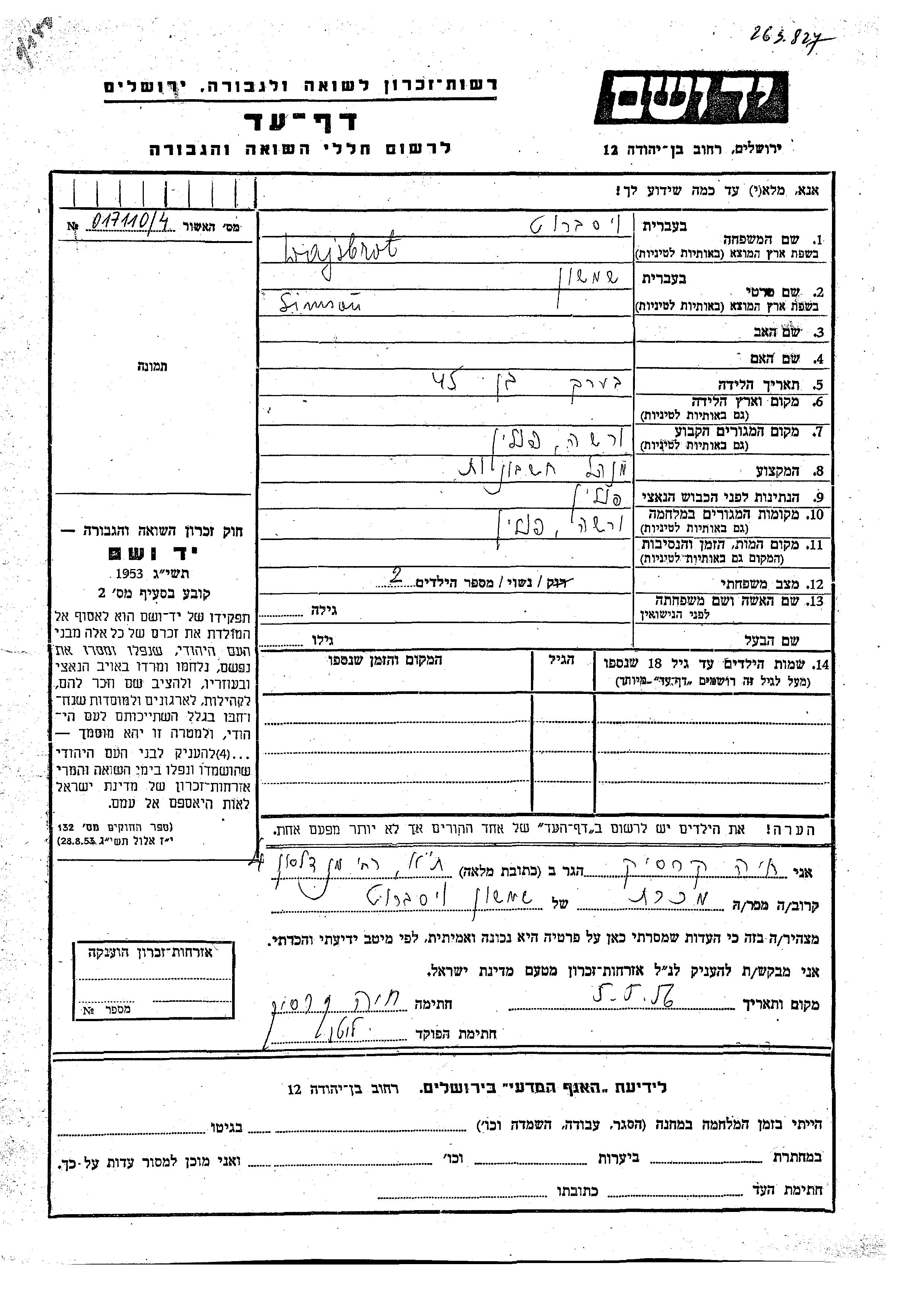 Яд Вашем - Листы свидетельских показаний Мемориального фонда