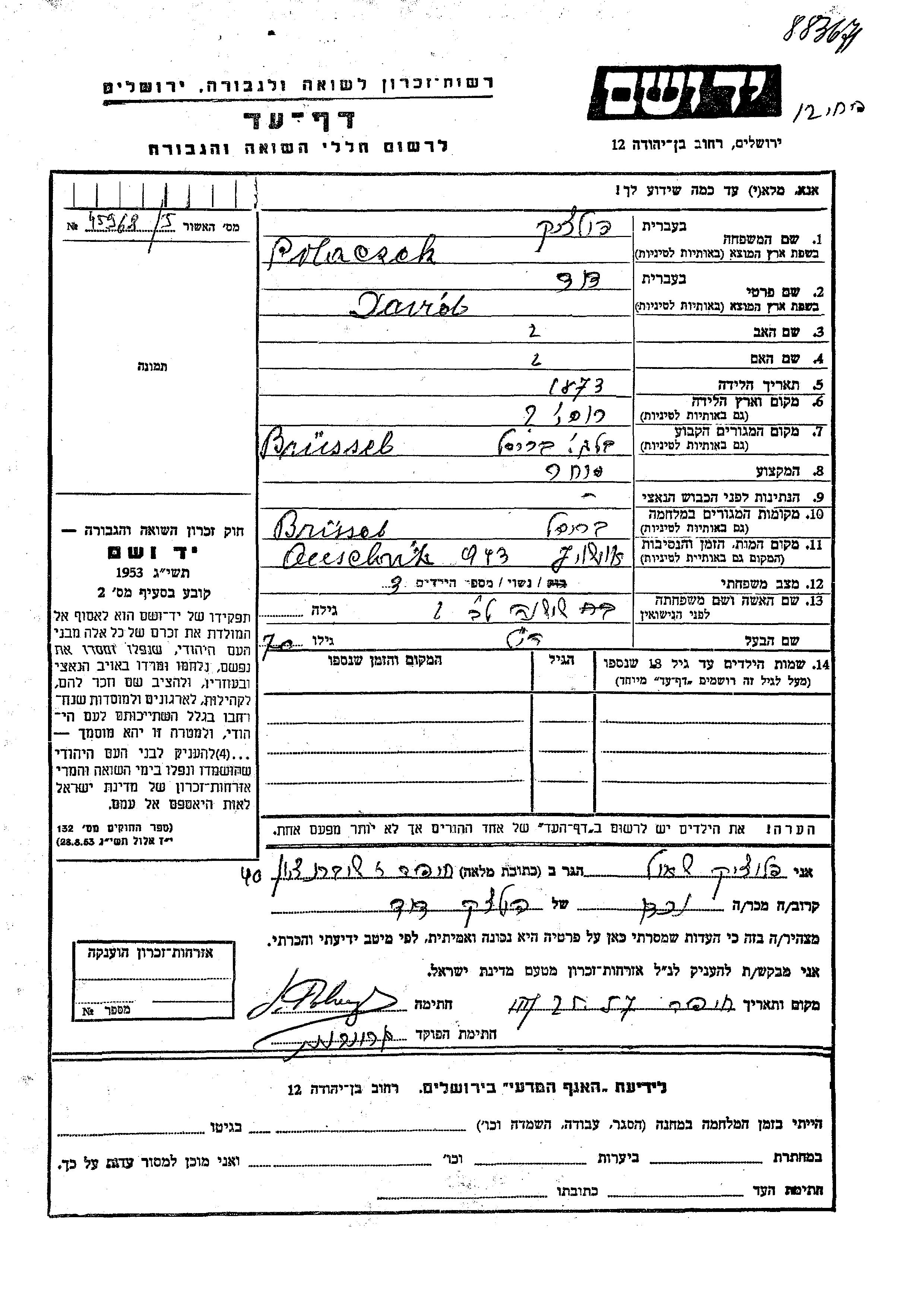 Давид Полячек, место рождения: Россия (СССР). Торговец / торговка. Женат / замужем. Место жительства до войны: Брюссель, Бельгия. Место во время войны: Брюссель, Бельгия.