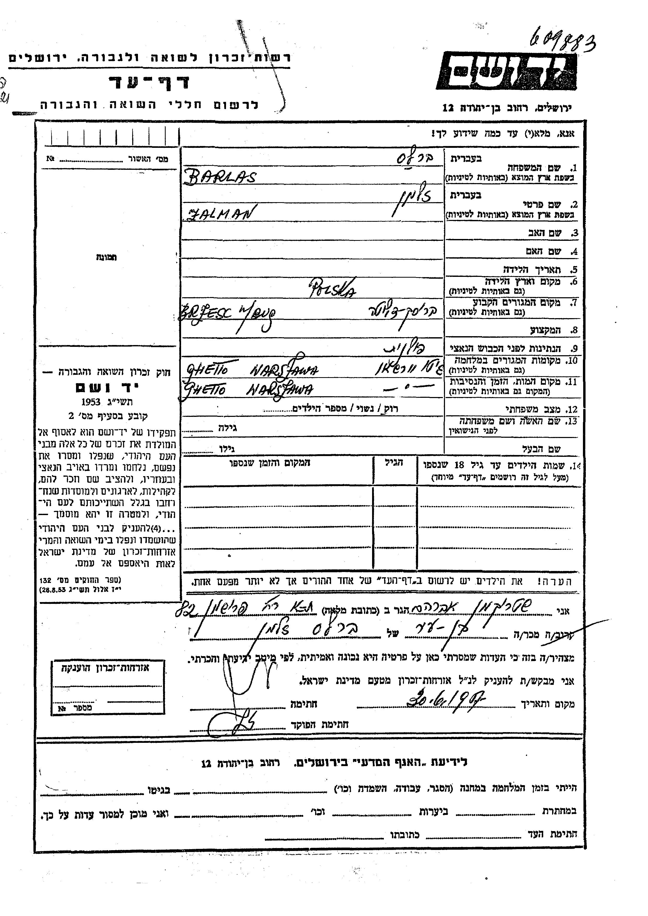 Барлас Залман Брест, Польша Лист свидетельских показаний