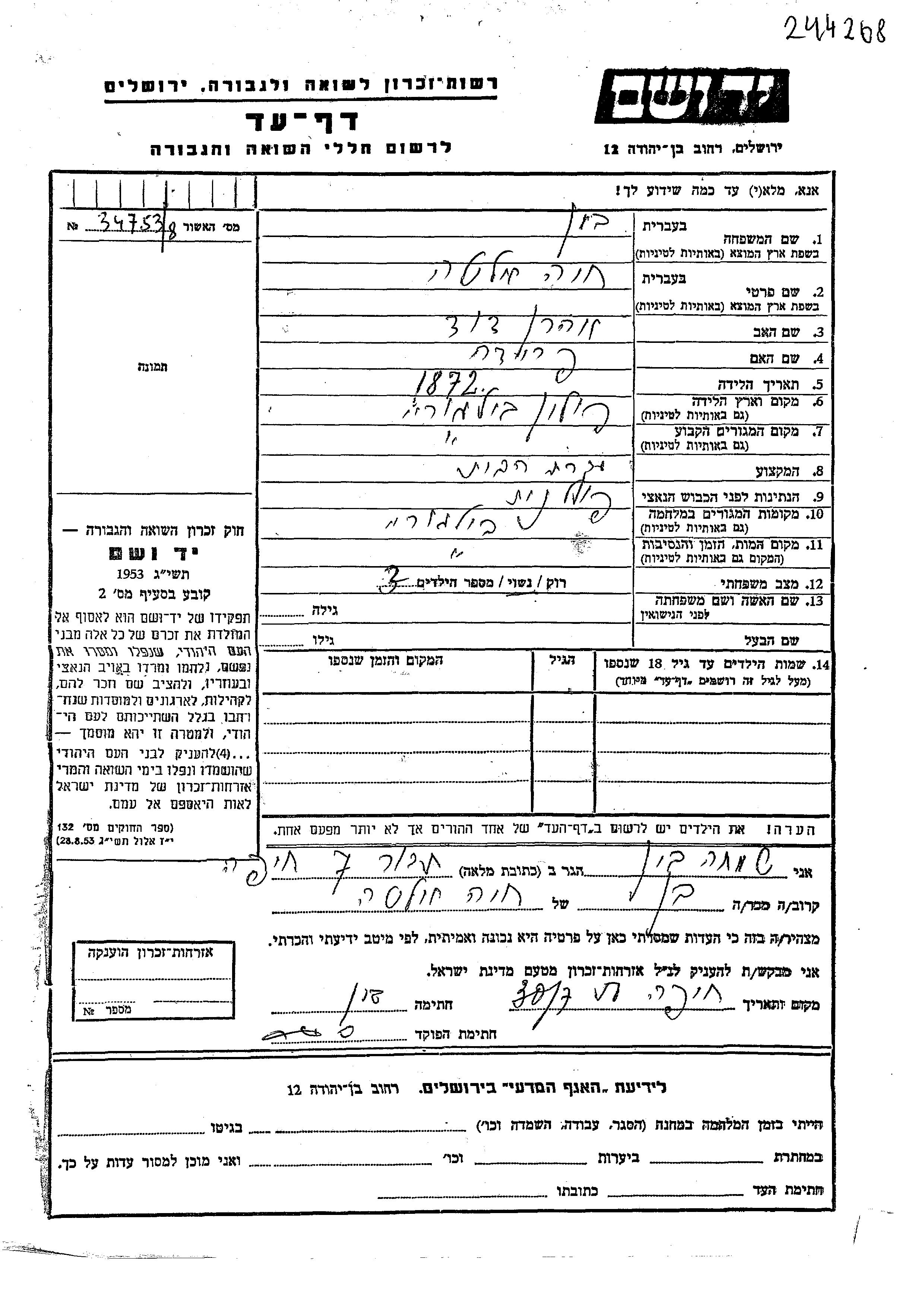 Яд Вашем - Листы свидетельских показаний Мемориального фонда