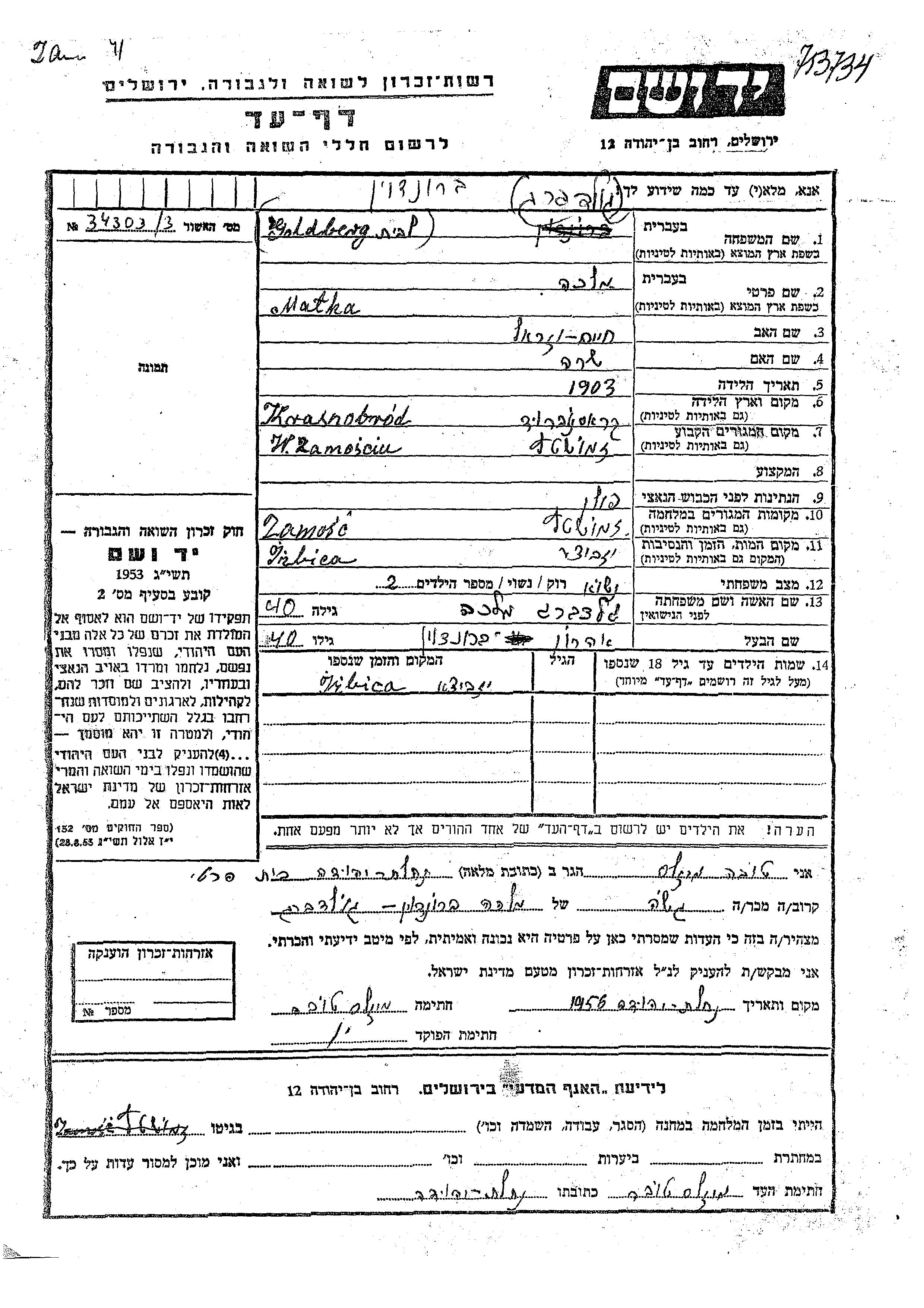Яд Вашем - Листы свидетельских показаний Мемориального фонда