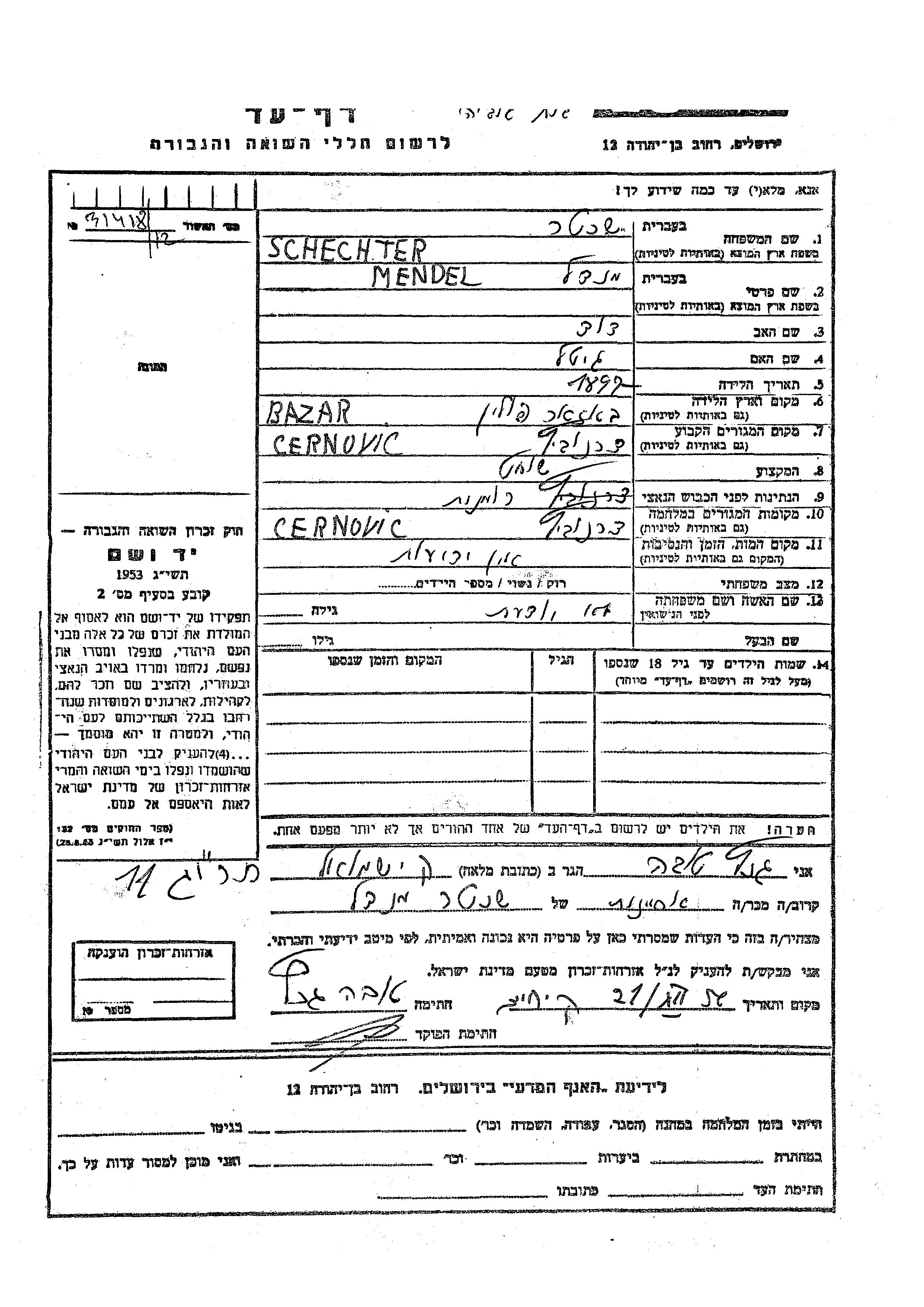 Шехтер Мендель 1897 Черновцы, Румыния Лист свидетельских показаний