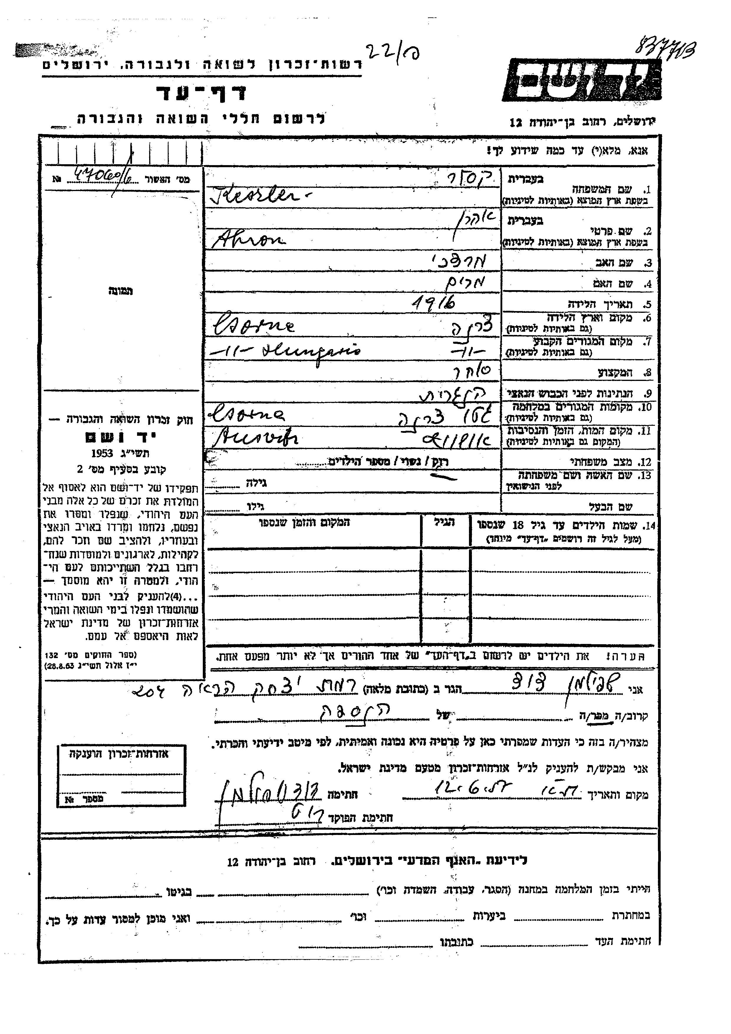 Яд Вашем - Листы свидетельских показаний Мемориального фонда