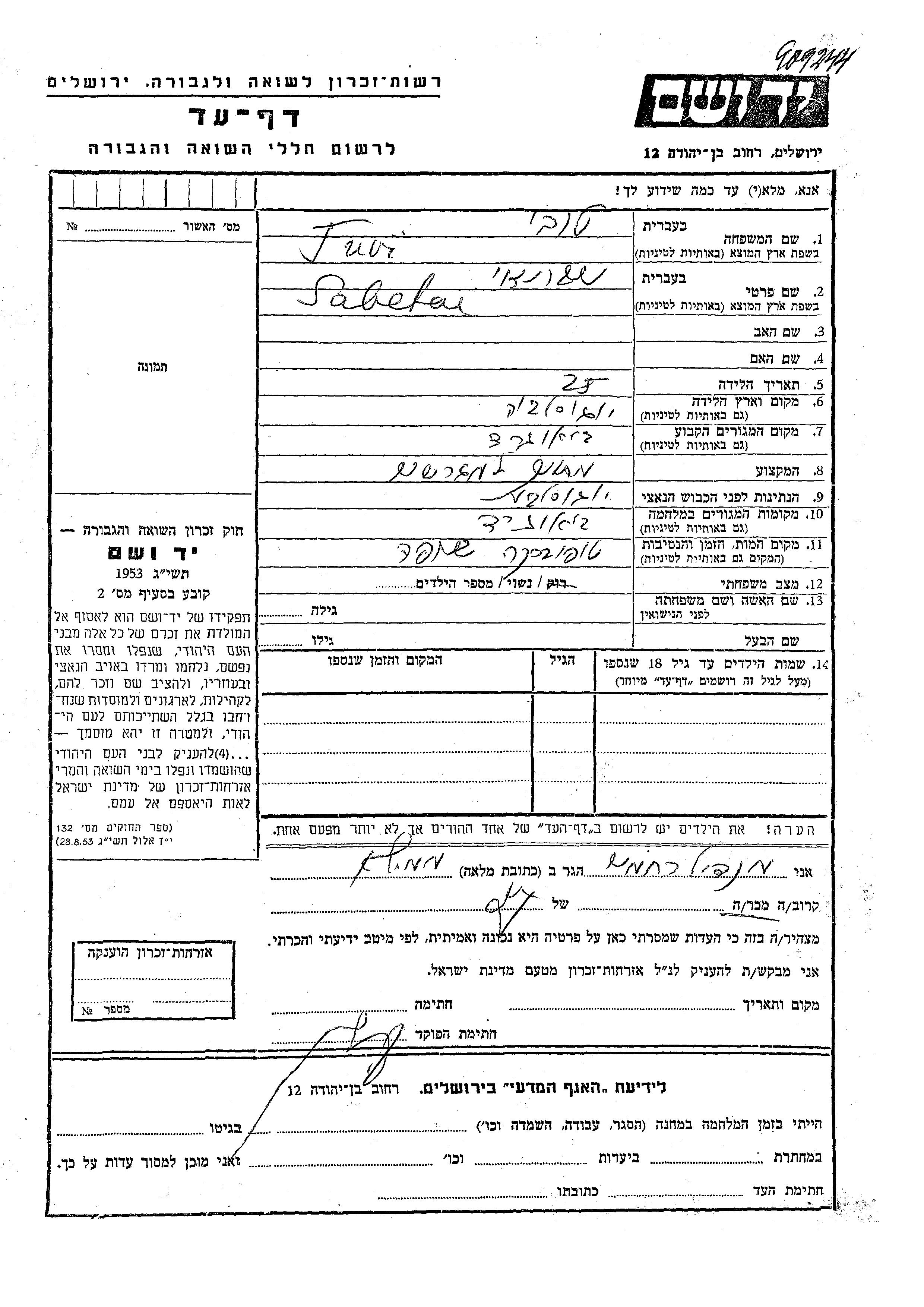 Туви Туби Шабетай Белград, Югославия Лист свидетельских показаний