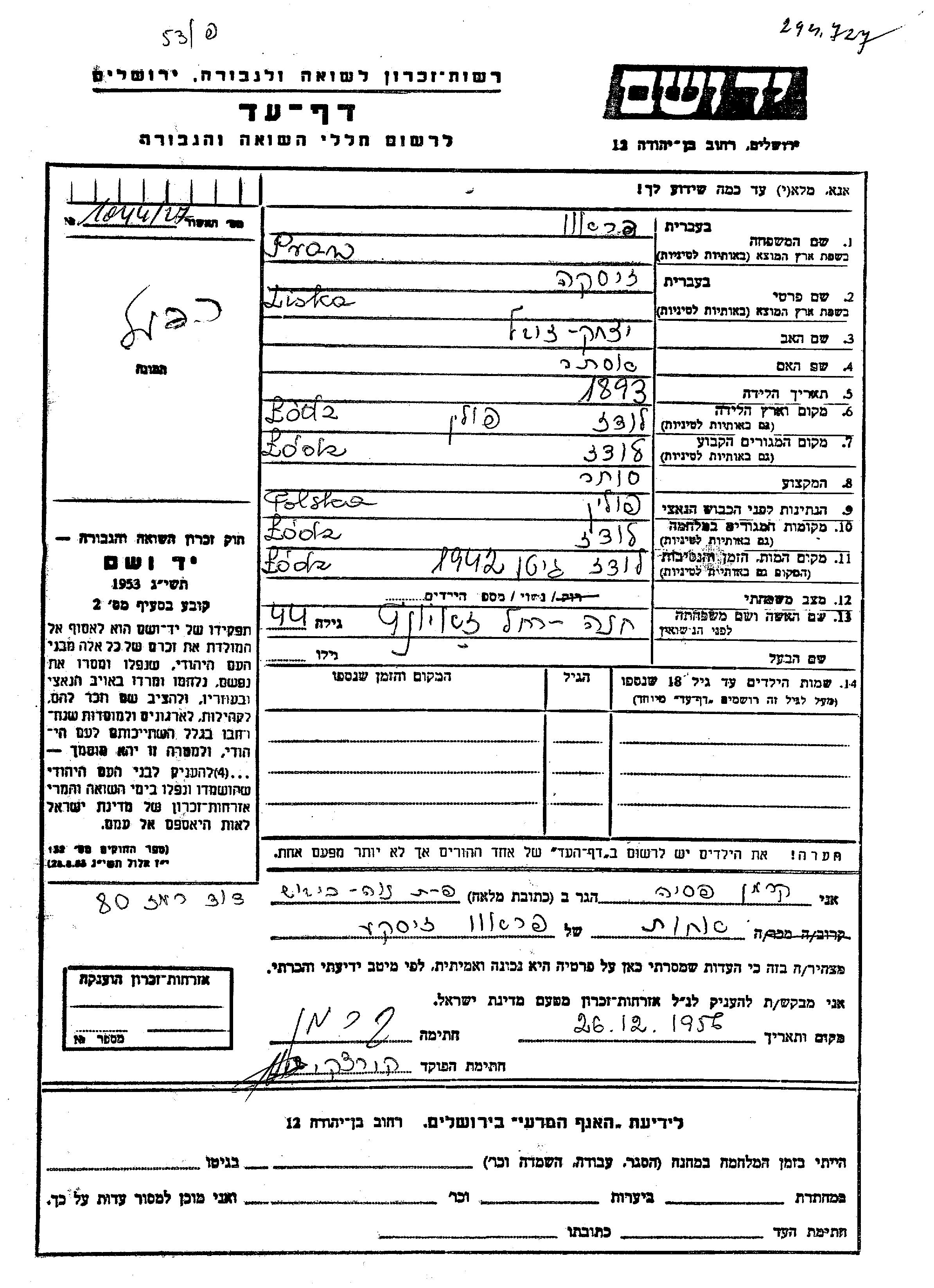 Яд Вашем - Листы свидетельских показаний Мемориального фонда