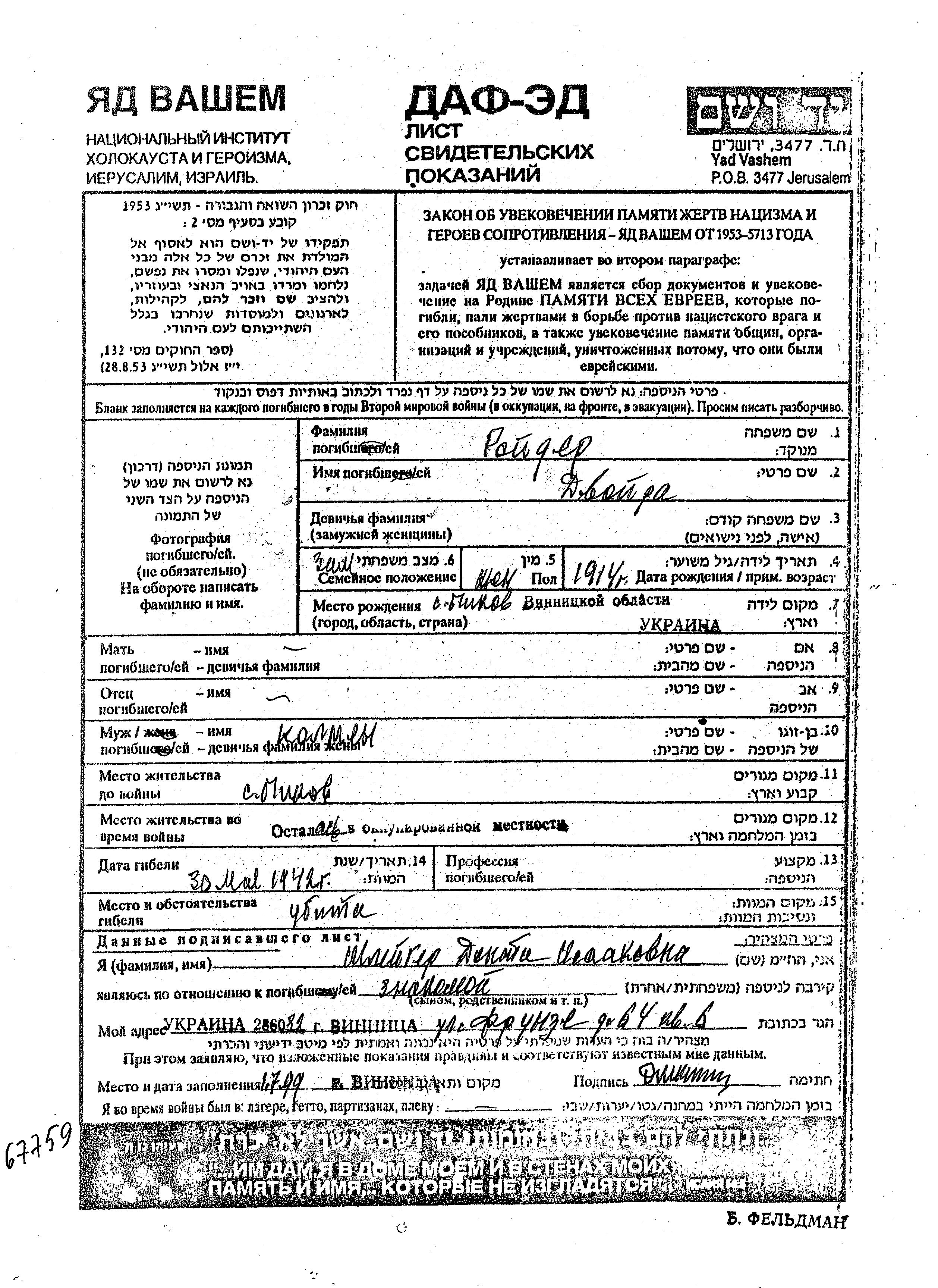 Поиск подателя Листа свидетельских показаний. Поиск по любому имени, включая уменьшительное или прозвище