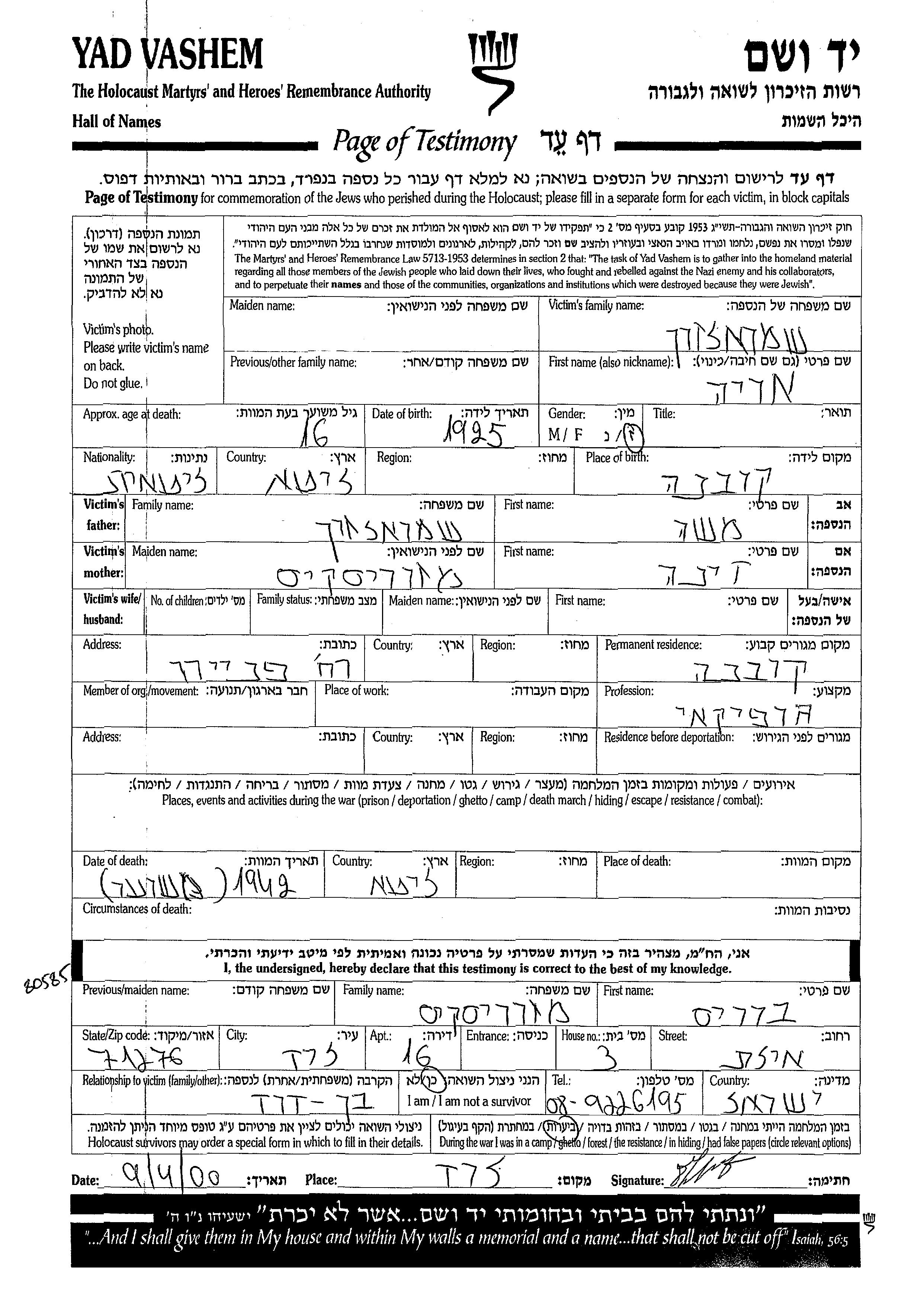 Яд Вашем - Листы свидетельских показаний Мемориального фонда