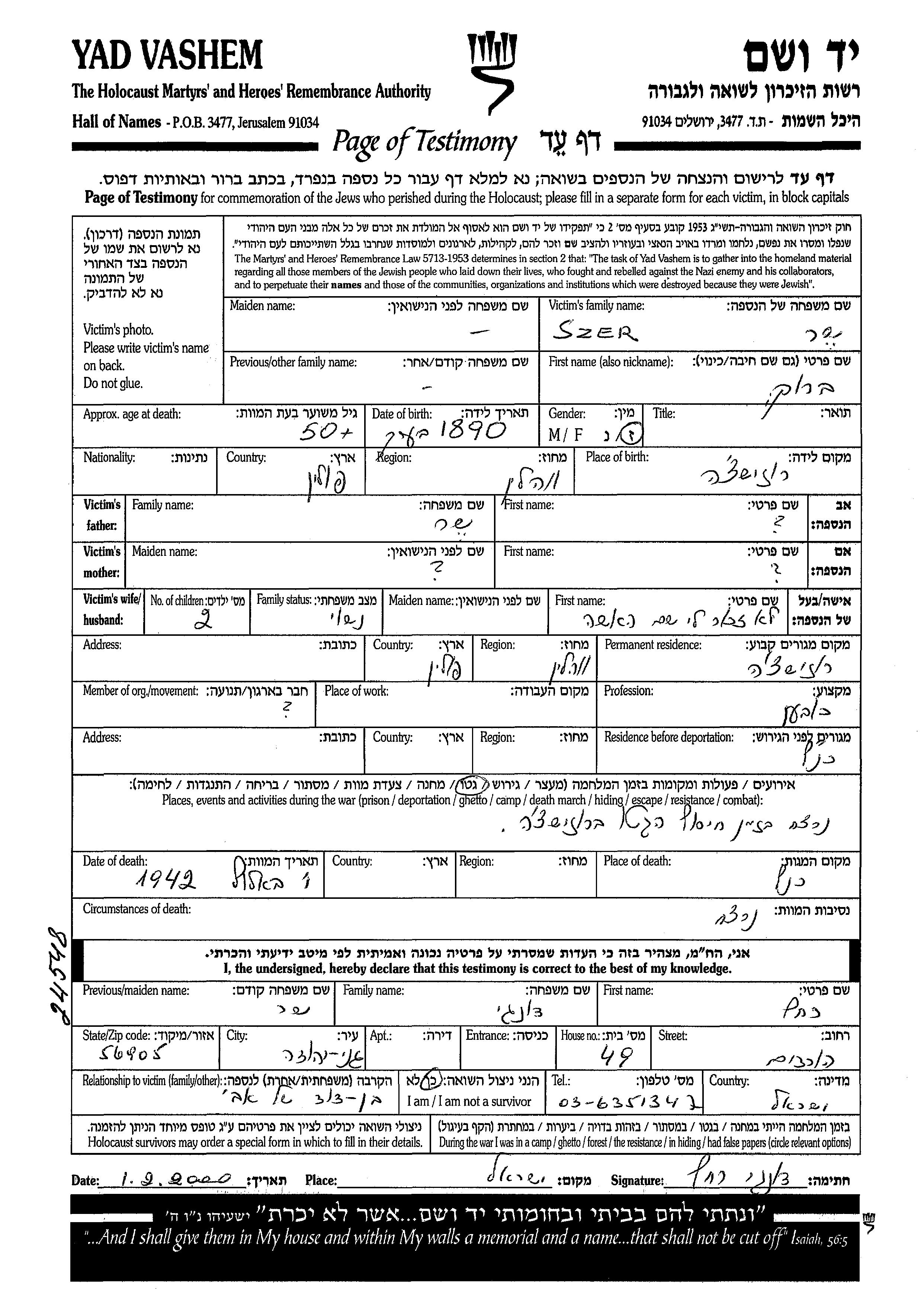 Яд Вашем - Листы свидетельских показаний Мемориального фонда