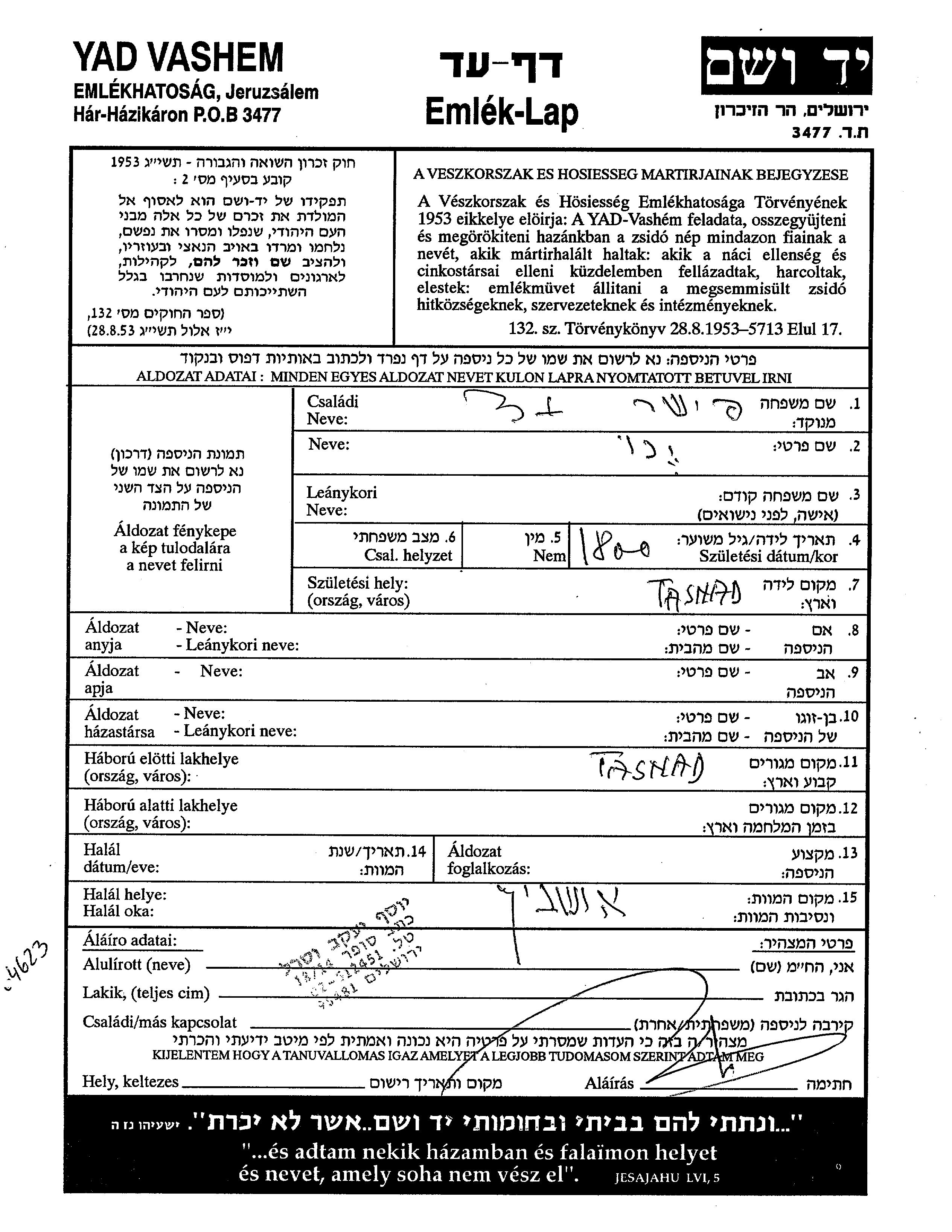Яд Вашем - Листы свидетельских показаний Мемориального фонда