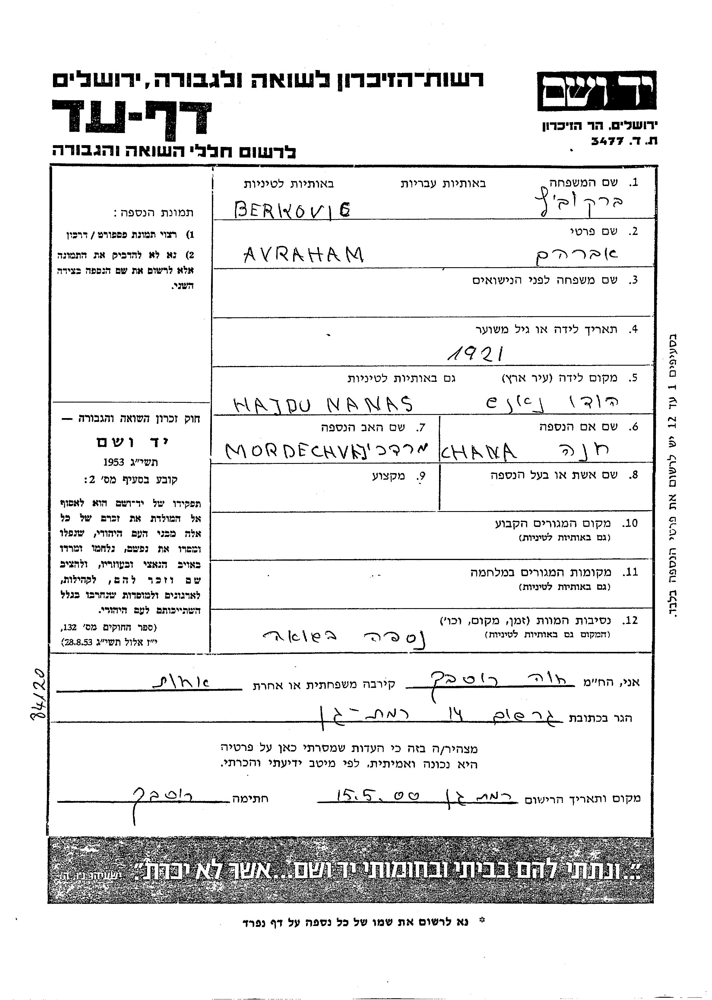 Любое место нахождения во время войны: город/село или гетто/лагерь, или область/район, или страна