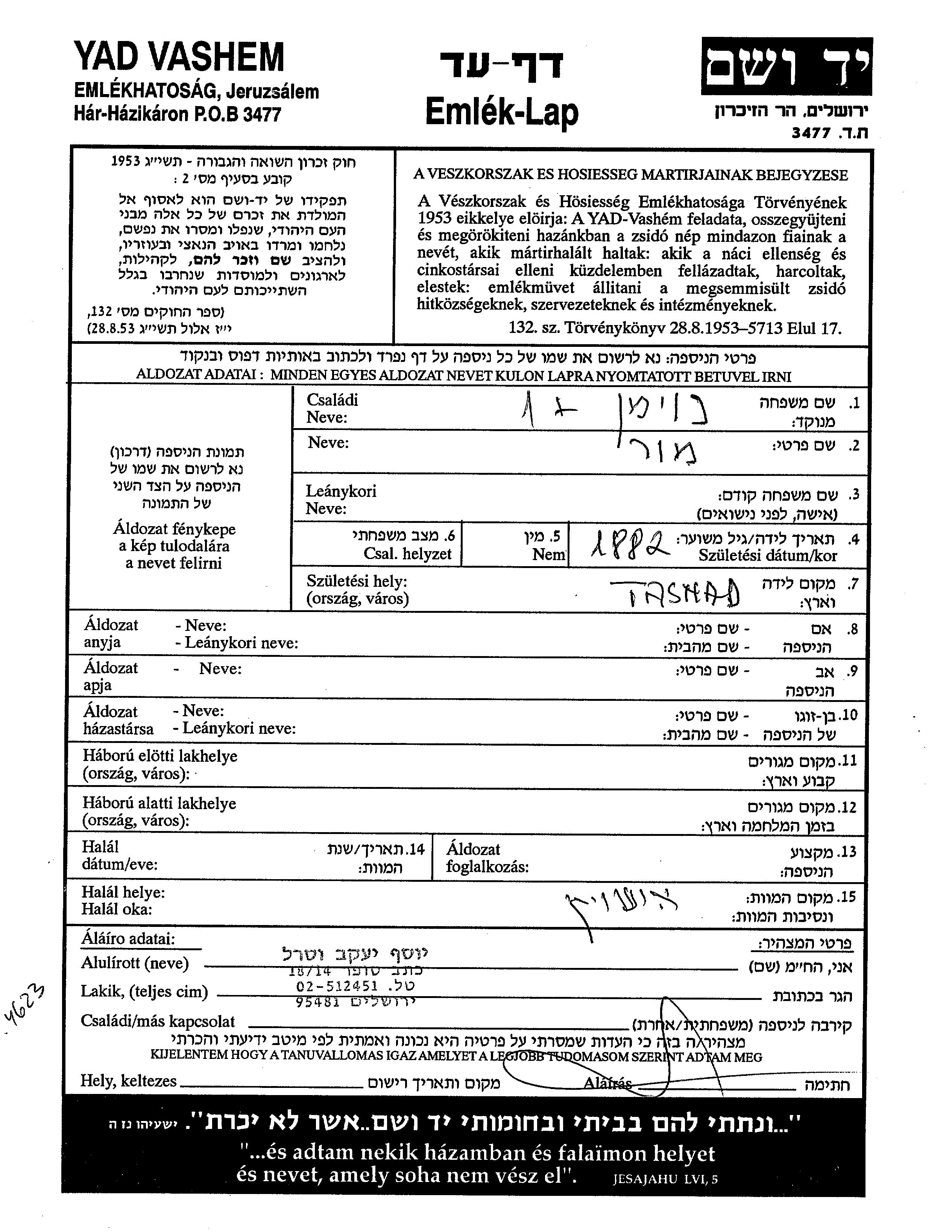 Мор уничтожен в период Шоа. место смерти: Аушвиц, Польша.