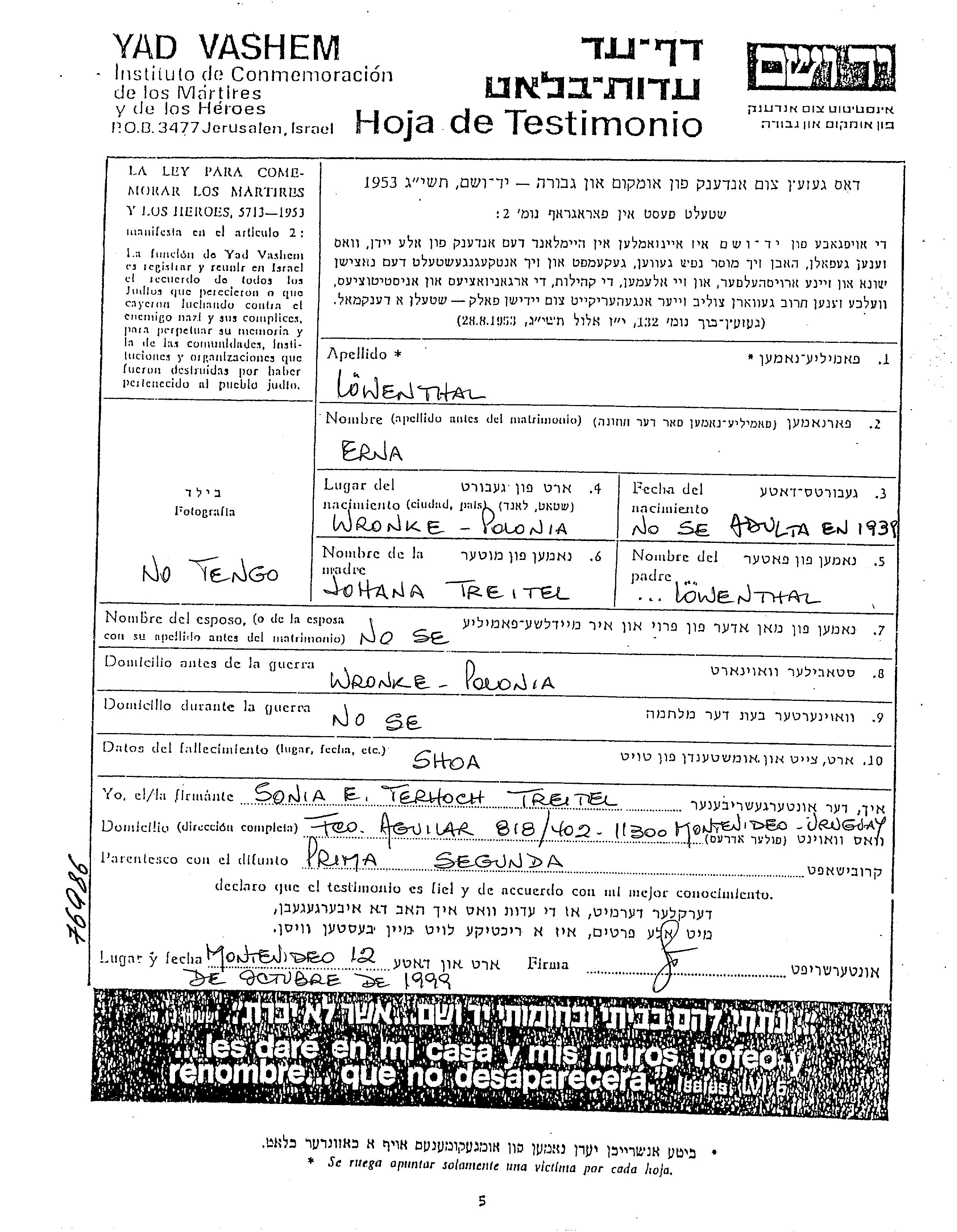 Лёвенталь Эрна 1939 Вронке, Польша Лист свидетельских показаний