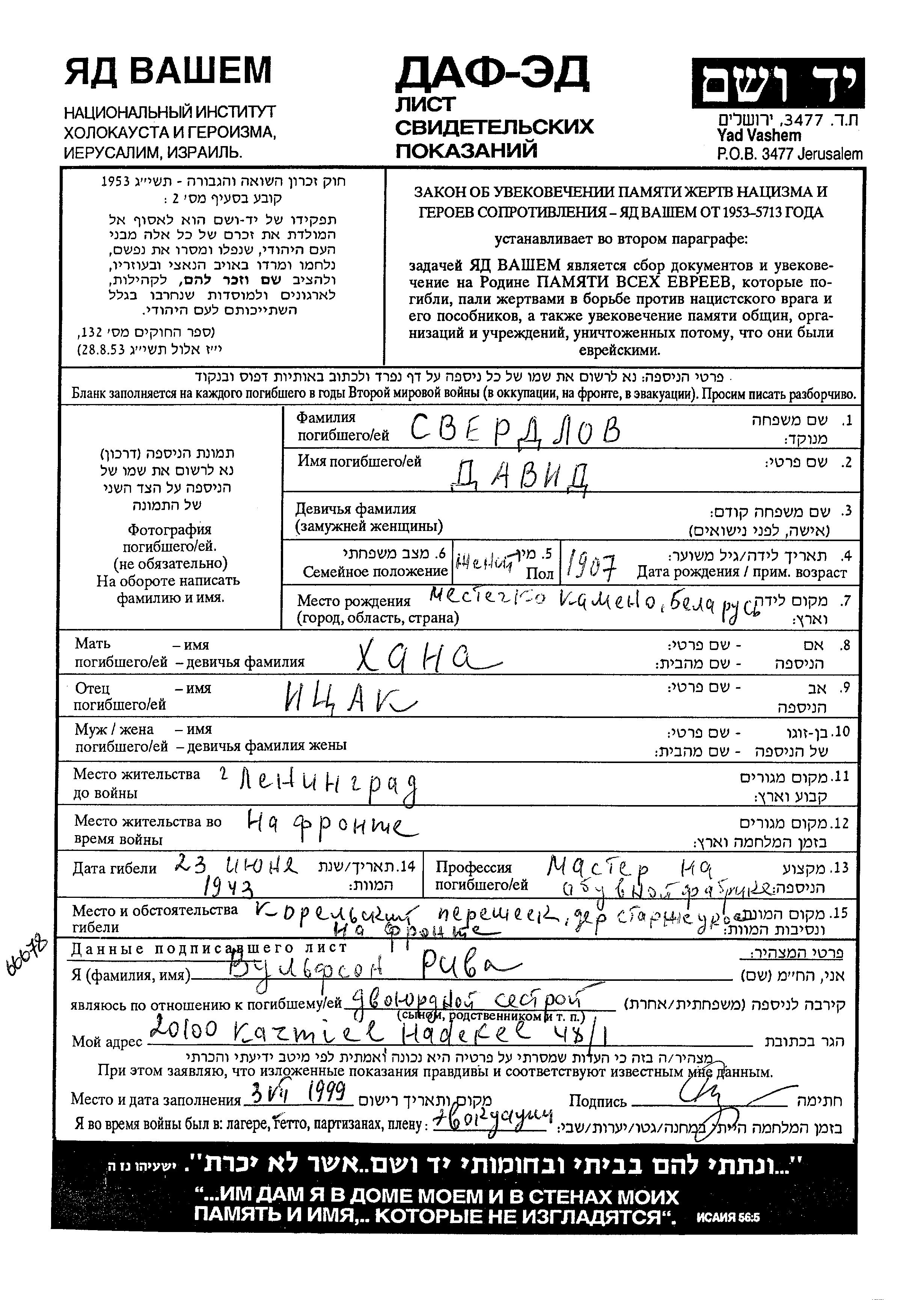 Поиск подателя Листа свидетельских показаний. Поиск по любому имени, включая уменьшительное или прозвище